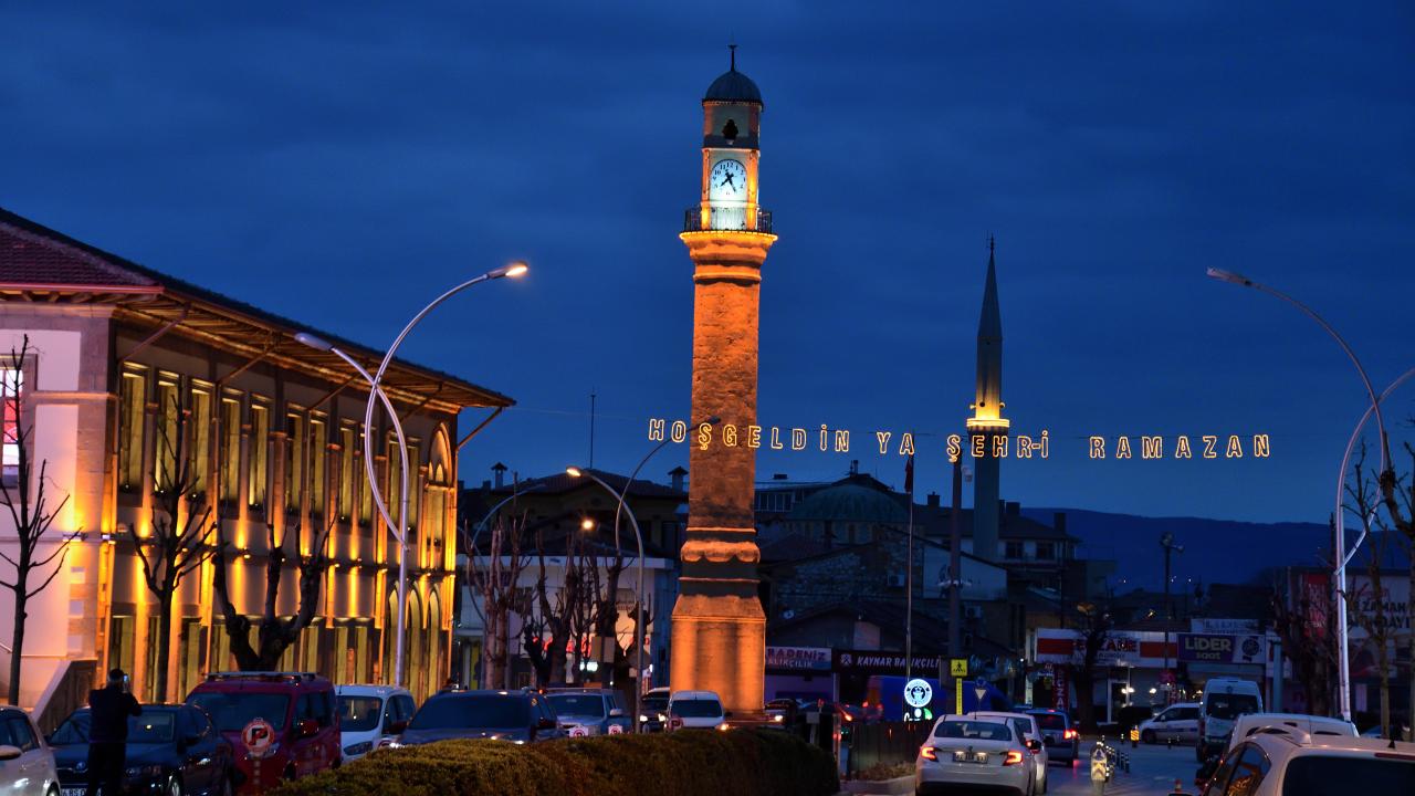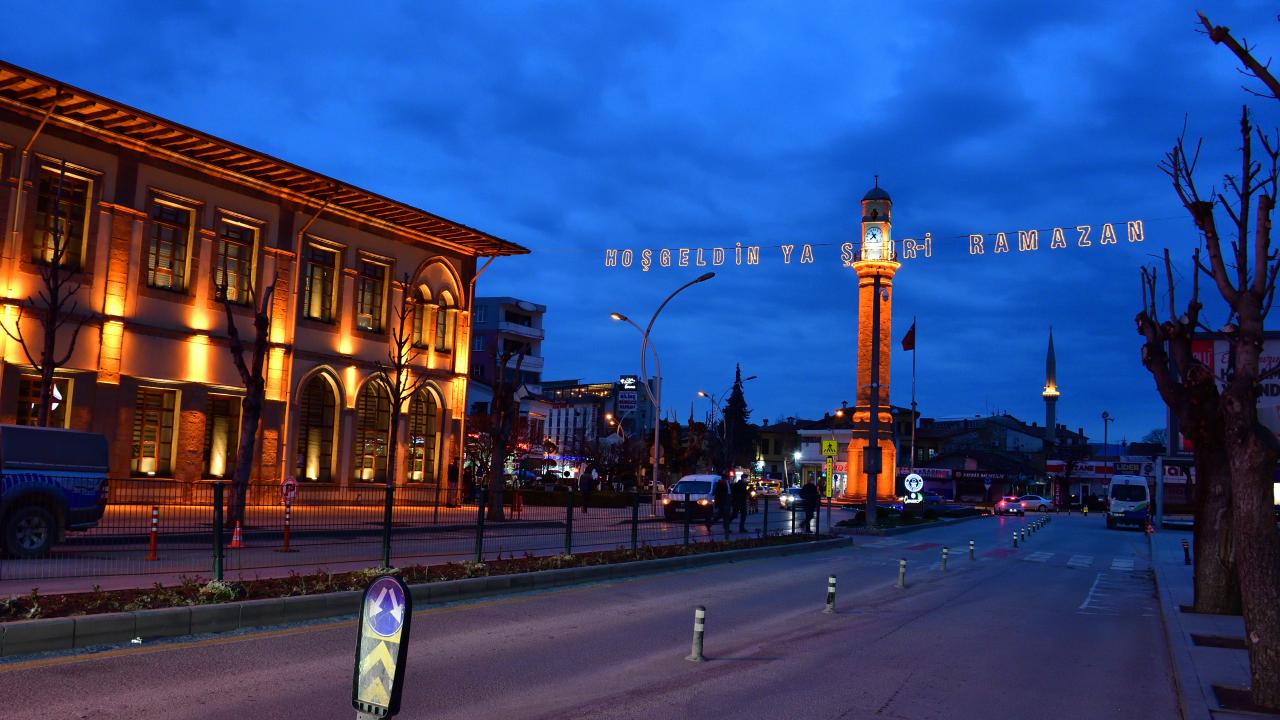 Çorum Hürriyet Meydanı`na Çorum Belediyesi`nin tarihi taş binası ile PTT şube binası arasına "Hoşgeldin Ya Şehr-i Ramazan" yazılı mahya asıldı.