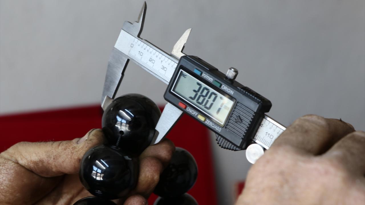 Bir süre önce biriktirdiği taşları toprak altından çıkaran Başar, yaklaşık 2 hafta süren el işçiliğiyle 75-85 santimetre uzunluğunda ve 485-775 gram ağırlığında iki tespih yaptı.
