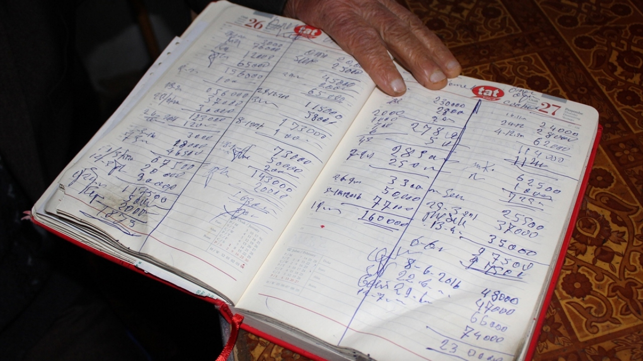 Eski bakkalların olmazsa olmazı veresiye defterini Bekir Kemal dükkanı açtığı ilk günden beri tutuyor. Bu defterin kabarıklığı ilk günden beri özellikle fındık hasadı öncesi alınan kumanyalarla arttı, fındığını satan köylülerin ödeme yapmasıyla da azaldı.