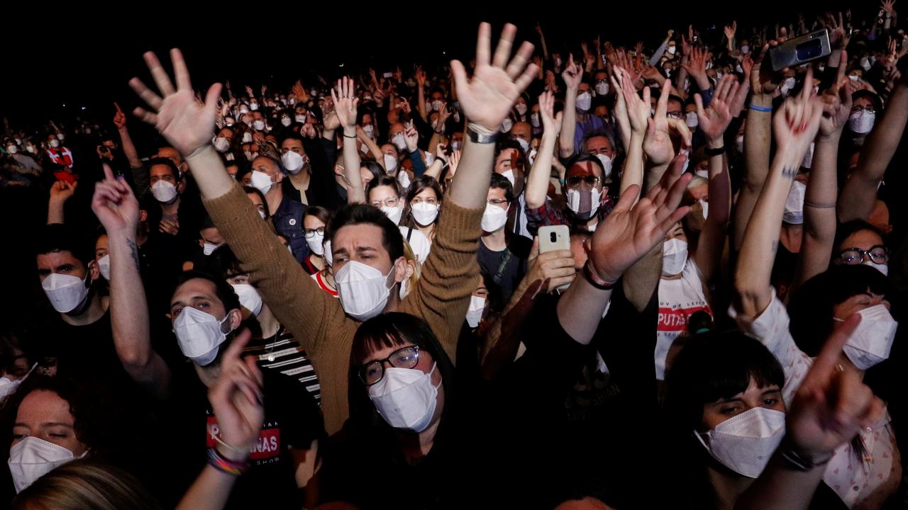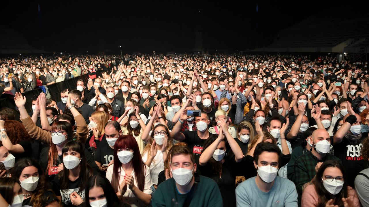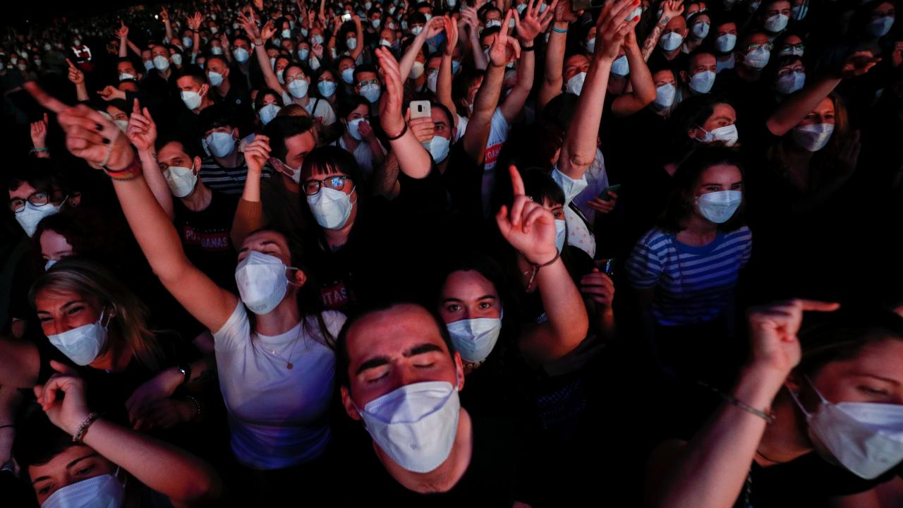 İspanya'da koronavirüs salgını döneminde ilk kez sosyal mesafe kuralının kaldırıldığı konser gerçekleşti. 5 bin kişinin katıldığı konsere girişte COVID-19 testi pozitif olanlar ve ateşi yüksek kişiler alınmadı.