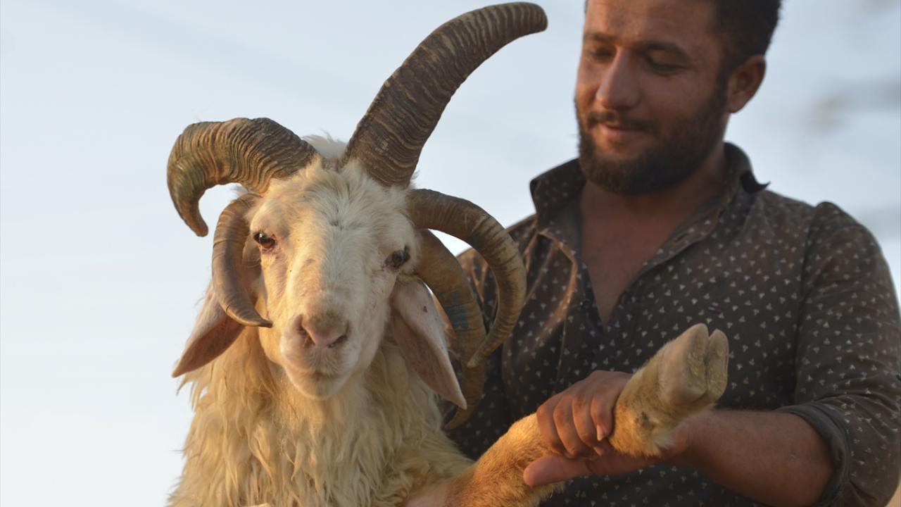 Sağında 2, solunda 2 ve ortada bir boynuzu olan koç, Iraklı besici Nejad Esat tarafından hayvan pazarında satışa çıkarıldı.