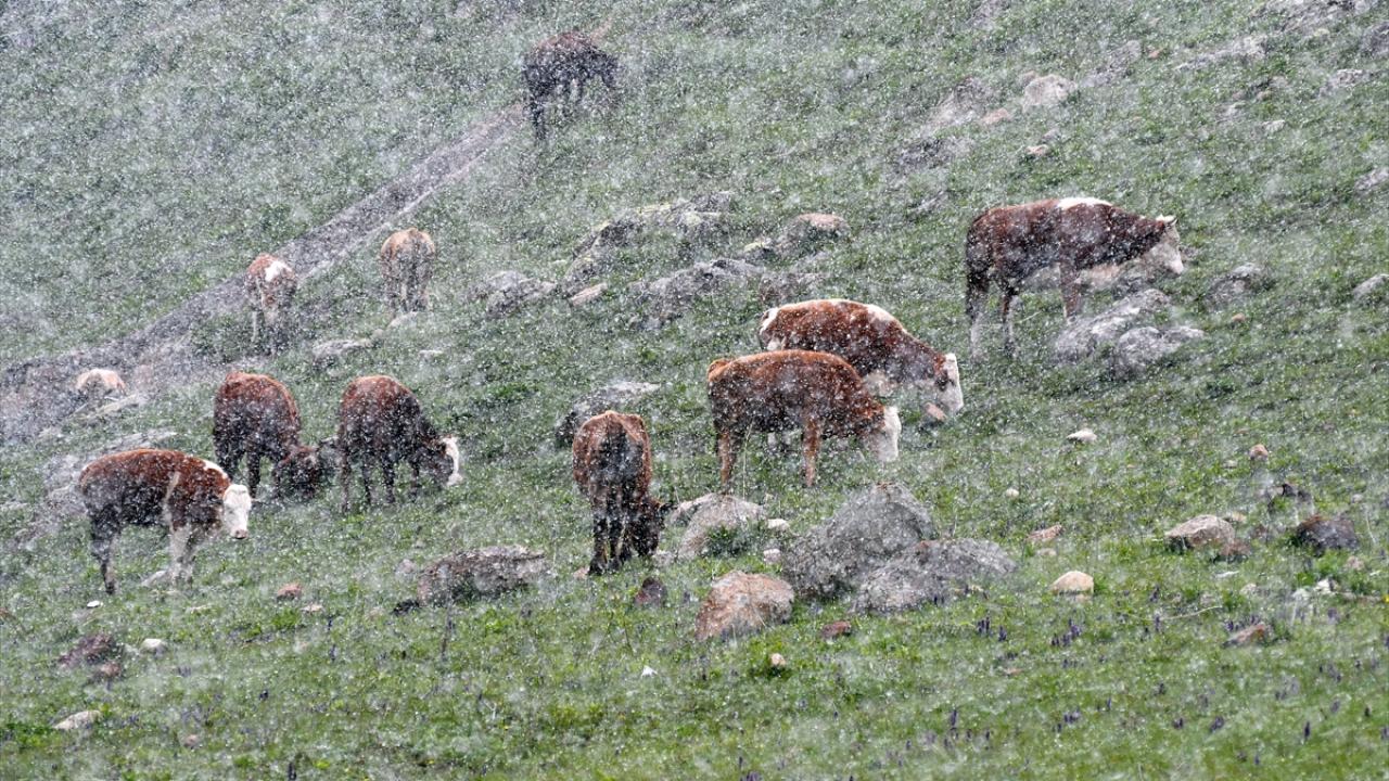Yüksek yaylalara küçükbaş hayvanlarını otlatmak için göç eden sürü sahipleri mayıs ayında kar yağınca kışlaya dönmek zorunda kaldılar. 1400 küçükbaş hayvanıyla köyün yolunu tutan Erkan Biçer, o anları cep telefonu kamerası ile kayda aldı.