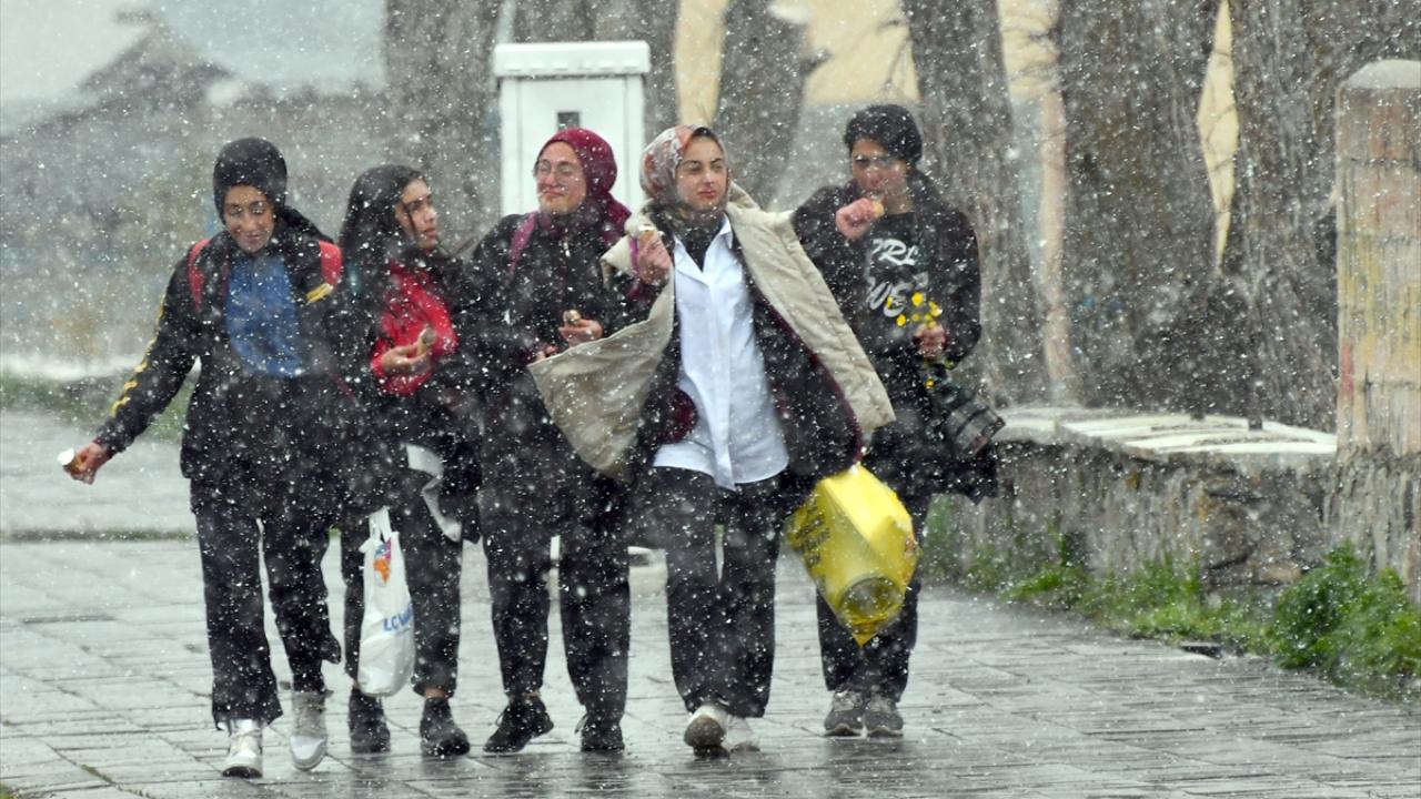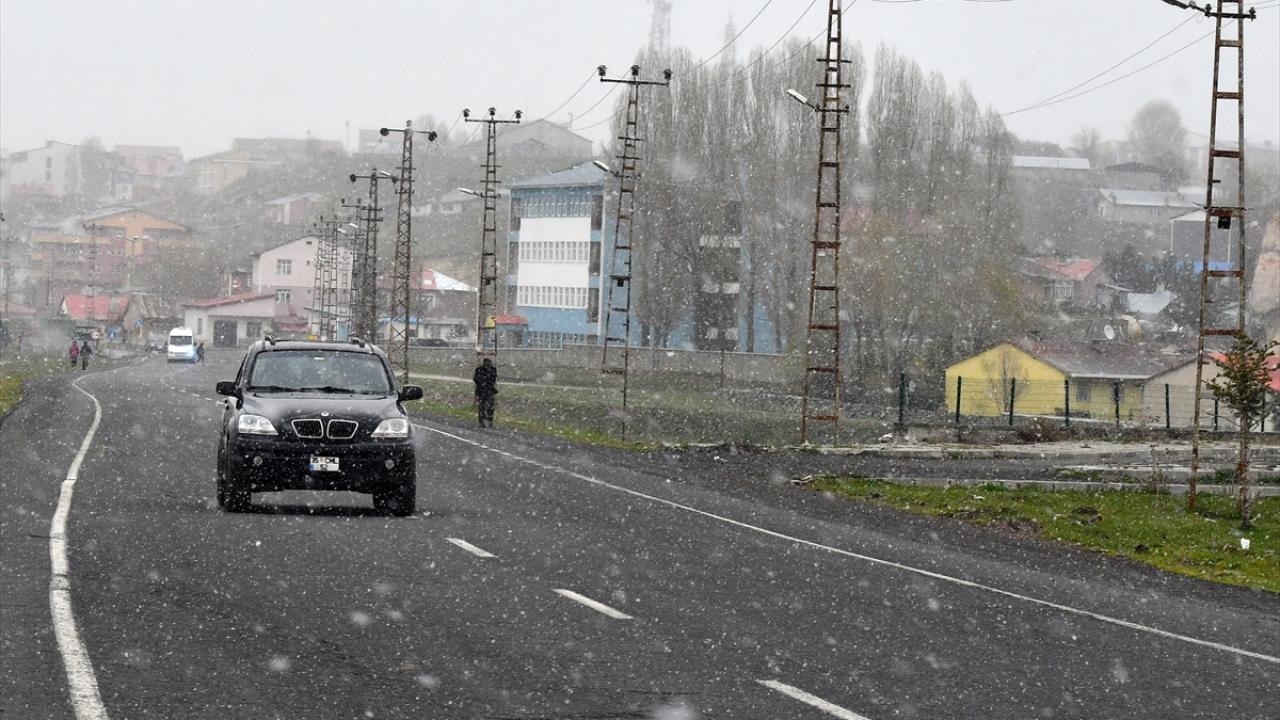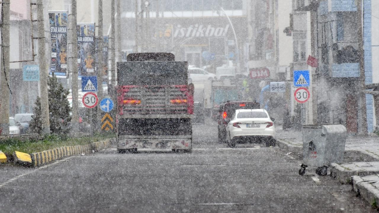 Kars`ın Sarıkamış ilçe merkezinde aralıklarla etkili olan sağanak yerini kar yağışına bıraktı.