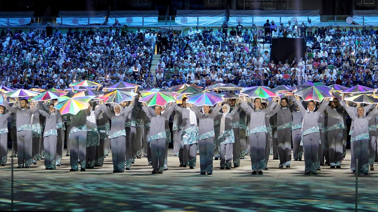 Konya Büyükşehir Stadı`nda düzenlenen açılış seremonisine Cumhurbaşkanı Recep Tayyip Erdoğan, Azerbaycan Cumhurbaşkanı İlham Aliyev, Kuzey Kıbrıs Türkiye Cumhuriyeti Cumhurbaşkanı Ersin Tatar, Filistin Başbakanı Muhammed Iştiyye, Arnavutluk Başbakanı Edi Rama, Cezayir Başbakanı Eymen Bin Abdurrahman, Uluslararası İslami Dayanışma Spor Federasyonu (ISSF) Başkanı ve Suudi Arabistan Spor Bakanı Prens Abdülaziz bin Turki el-Faysal, Kuveyt Enformasyon, Kültür ve Gençlik Bakanı Abdulrahman Al Mutairi, Cumhurbaşkanı Yardımcısı Fuat Oktay, TBMM Başkanı Mustafa Şentop, Gençlik ve Spor Bakanı Mehmet Muharrem Kasapoğlu, İçişleri Bakanı Süleyman Soylu, Çevre Şehircilik ve İklim Değişikliği Bakanı Murat Kurum, Tarım ve Orman Bakanı Vahit Kirişçi ile diğer katılımcı ülkelerin temsilcileri ve büyükelçileri ile spor severler katıldı.