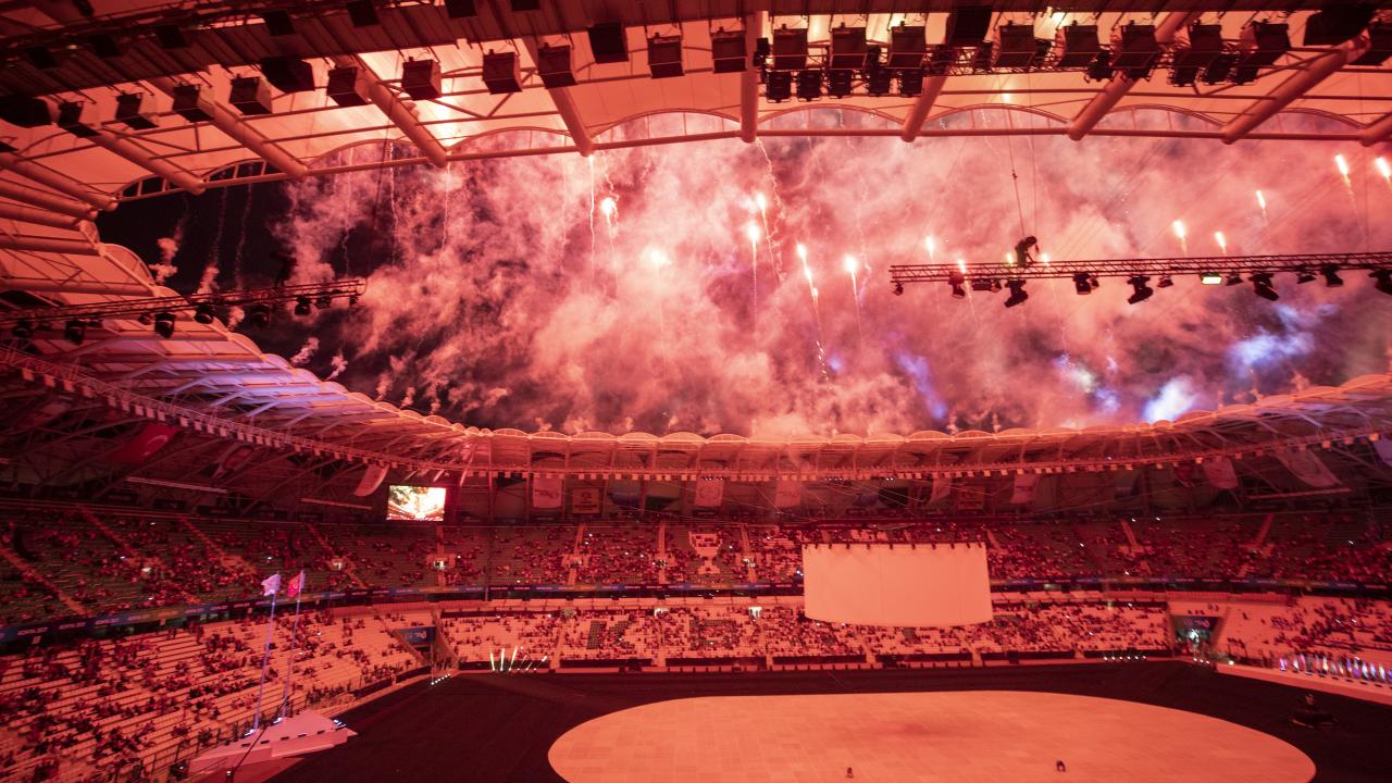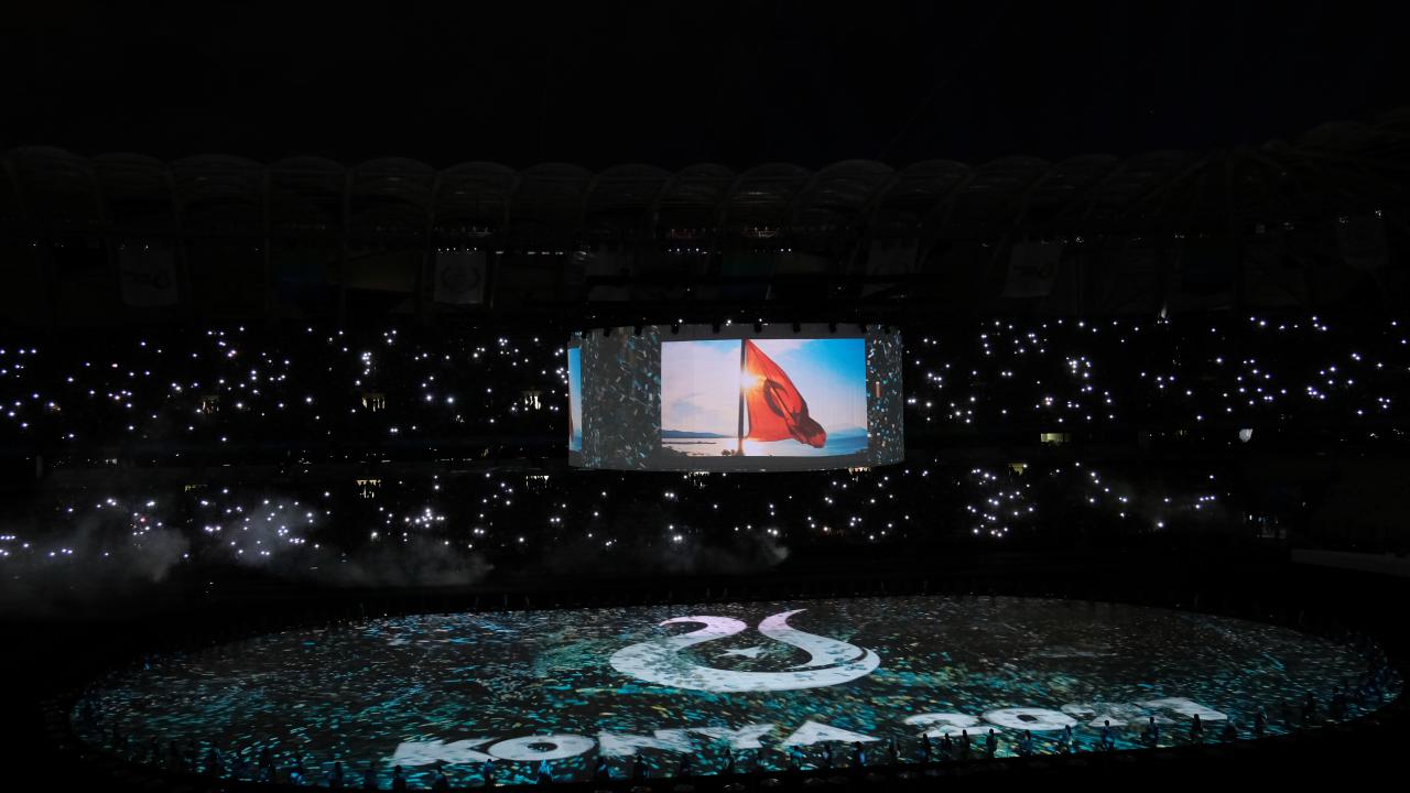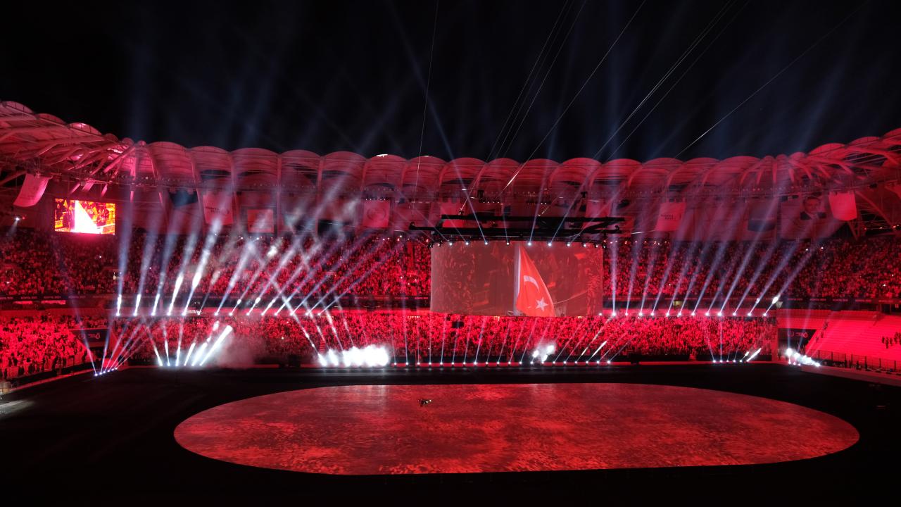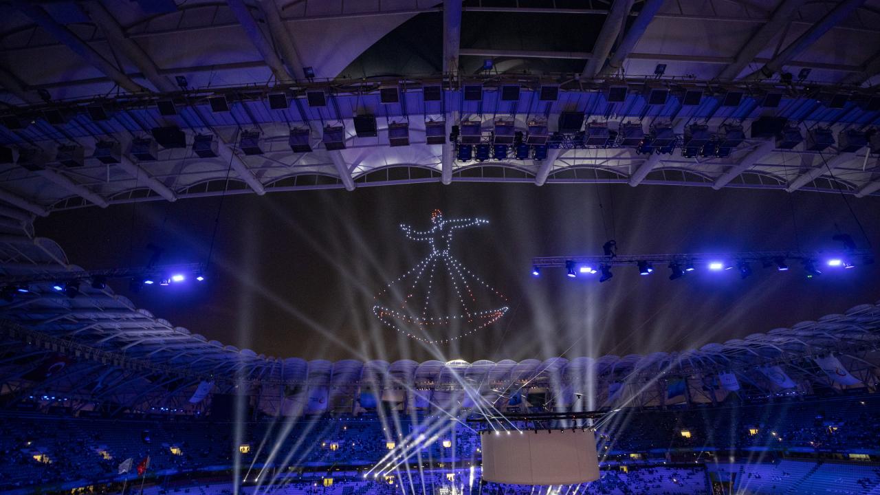Açılış töreninin sonunda çok fazla dronla yapılan şov ile Mevlana`nın silueti stadın üstünde gökyüzüne yansıtıldı ve gösteri büyük beğeni aldı.