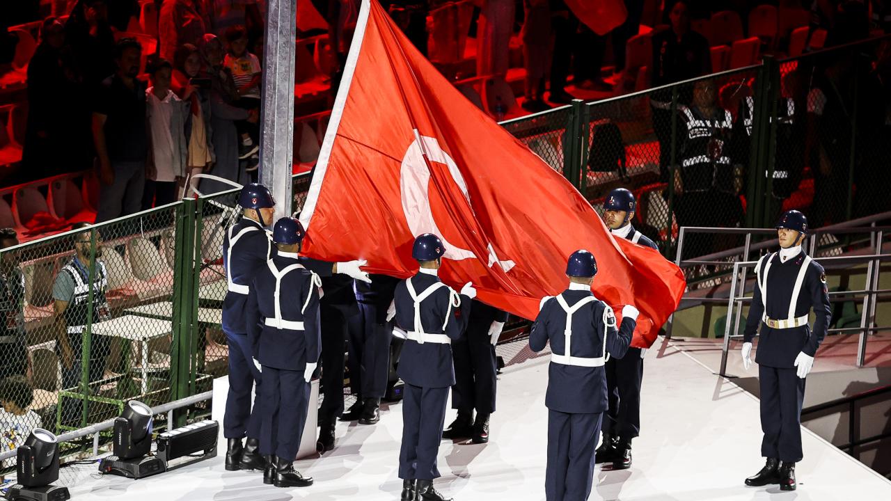 Oyunlarda Türk bayrağını kafilenin önünde milli sporcular Nafia Kuş ve Sena Keçici taşıdı.