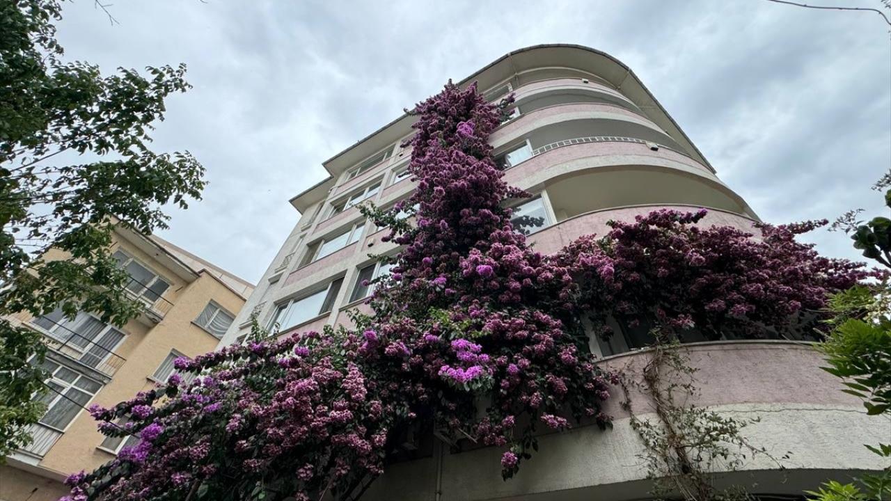 Teşvikiye Mahallesi Poyracık Sokak`taki 80 yıllık Lofça Palas Apartmanı`nın 29 yıllık görevlisi Yüksel Cesur, 18 yıl önce eşiyle gittiği Burgazada`da çok beğendiği begonvil sarmaşığının fidanını alarak apartmanın bahçesine dikti. Yıllarca özenle bakımını yaptığı begonvil çiçeği 5 katlı apartmanı sardı.