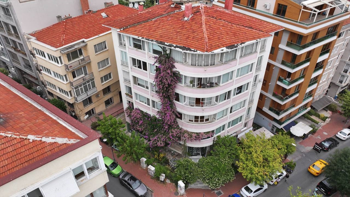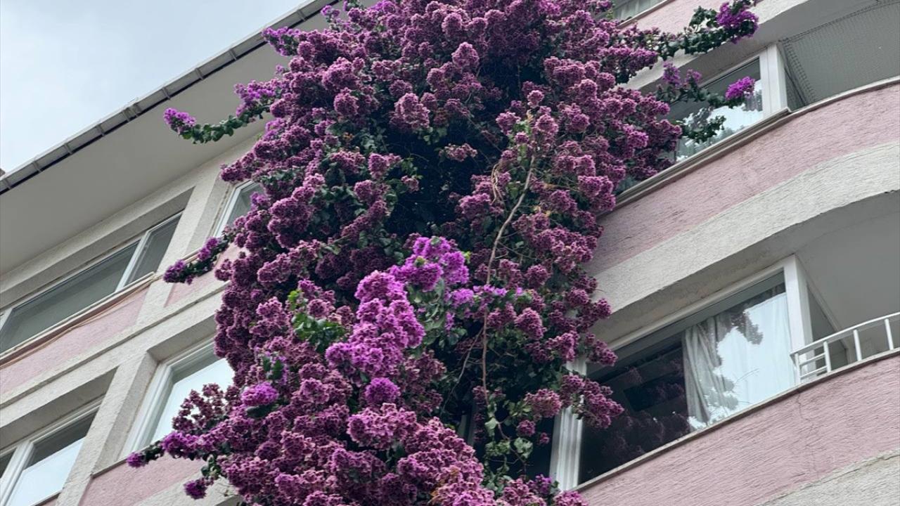 Dışarıdan bakıldığında binayla bütünleşen begonvil dairelerin balkonlarından geçerek yükselirken, apartman sakinleri ise sarmaşığın zarar görmesini istemiyor. Binayı sarıp sarmalayan begonvil çiçekleri, sık sık sosyal medyada da paylaşılıyor.