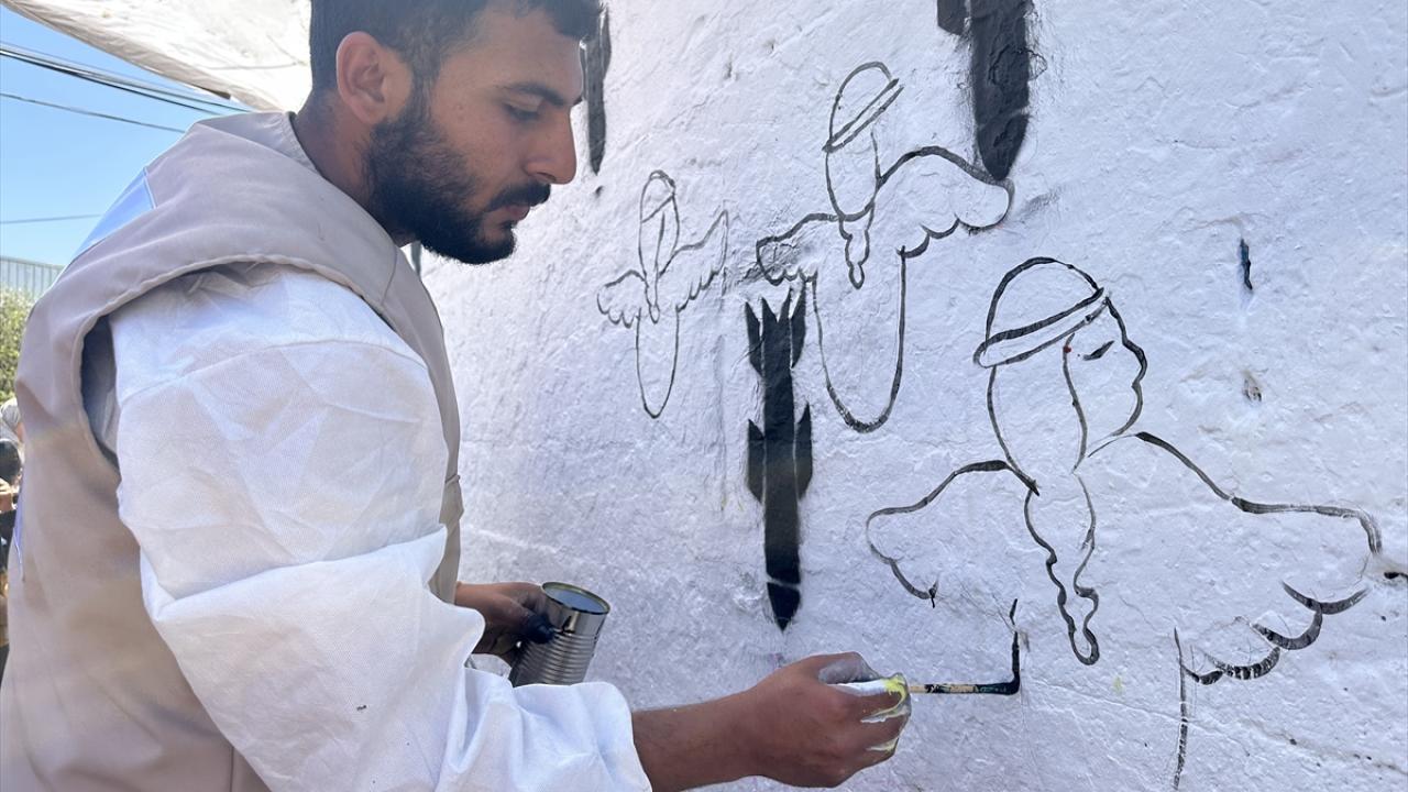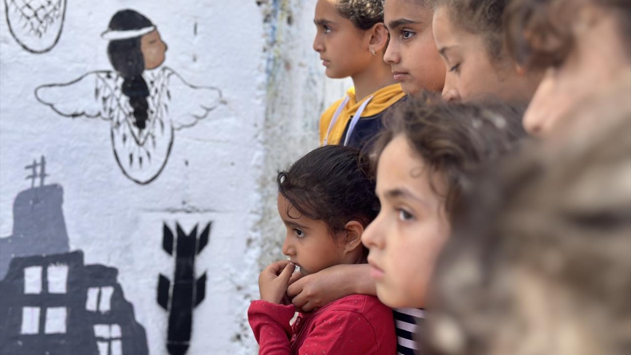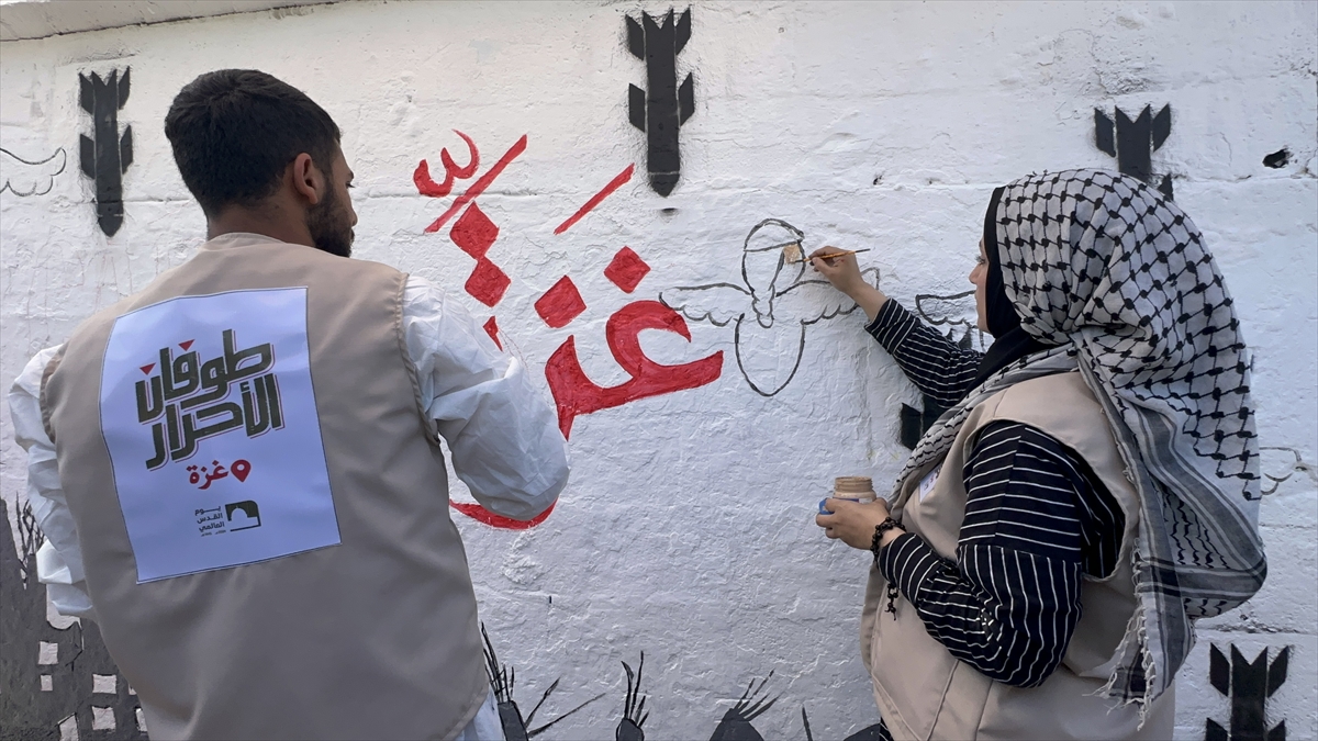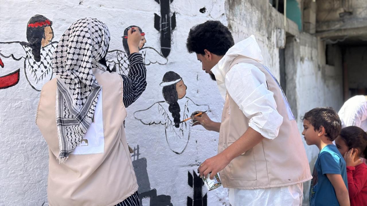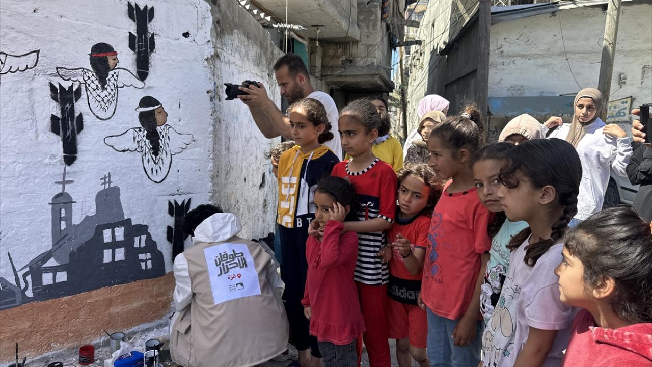 5 Nisan "Filistinli Çocuklar Günü" dolayısıyla Gazze Şeridi'nin Refah kentinde bir araya gelen Gazzeli ressamlar, İsrail saldırıları sonucu hayatını kaybeden binlerce çocuğu anmak için bir duvara grafiti çizdi.