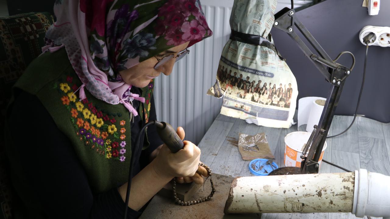 Erzurum'da 30 yıl boyunca 50 metrekarelik atölyede Oltu taşından ata mesleği tespihçilik yapan İhsan Çelik, devlet desteğiyle kurduğu imalathanede ürettiği takı ve hediyelik eşyaları Türkiye'nin dört bir yanına gönderiyor.