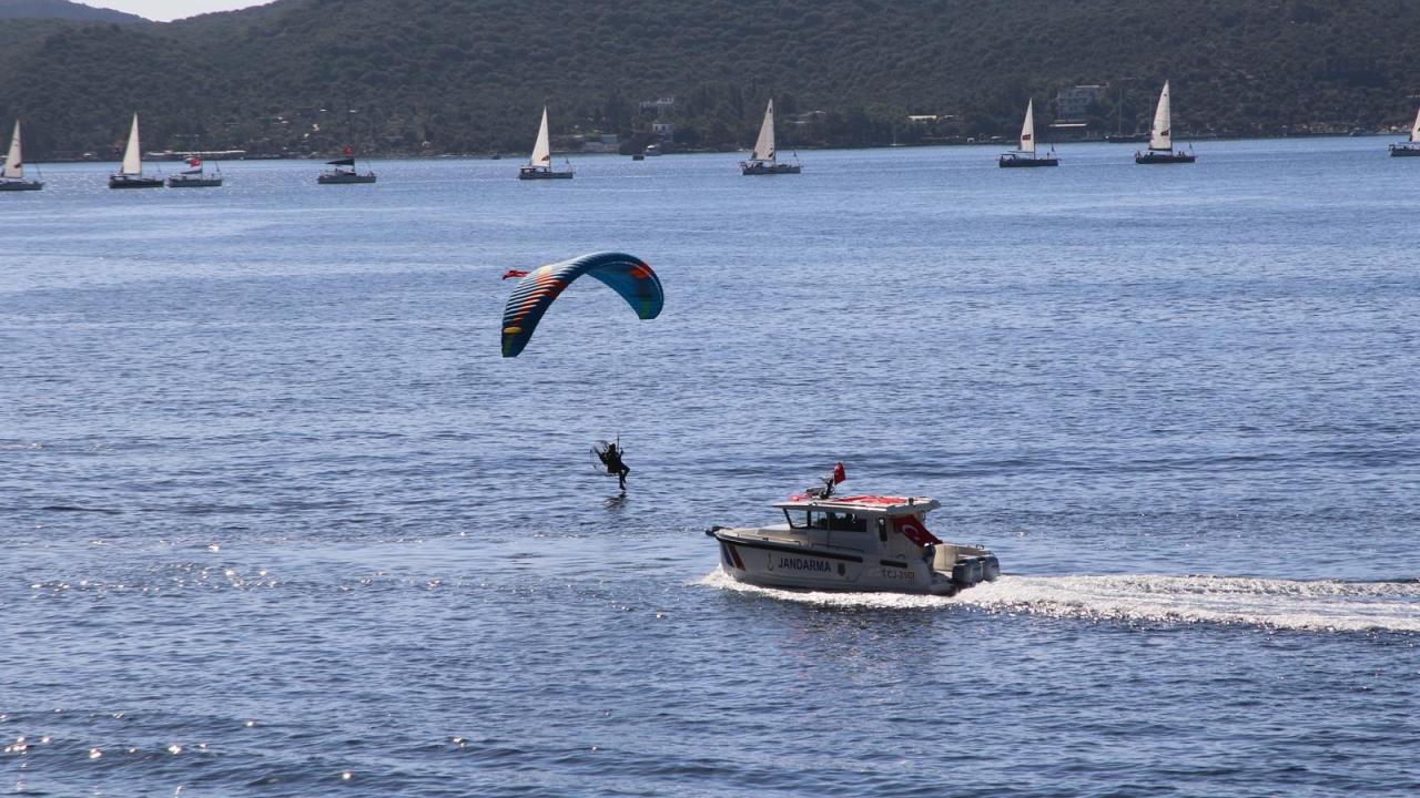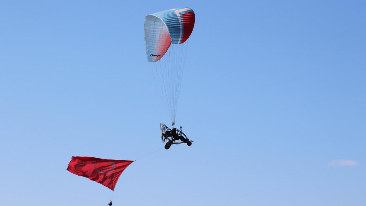 Etkinlikler kapsamında 50 paraşütçü, Türk bayraklarıyla gruplar halinde atlayış yaptı.