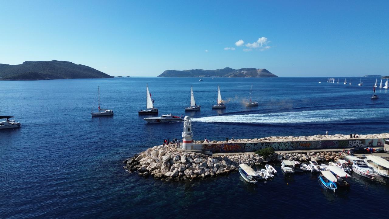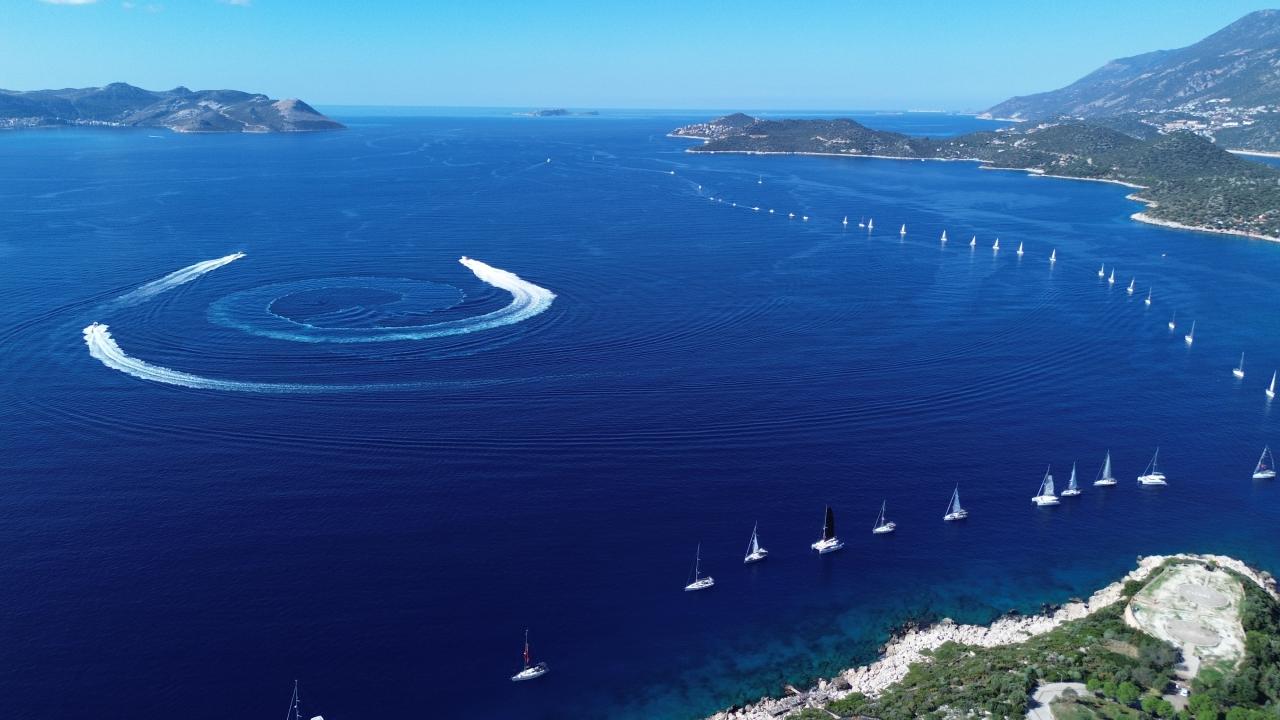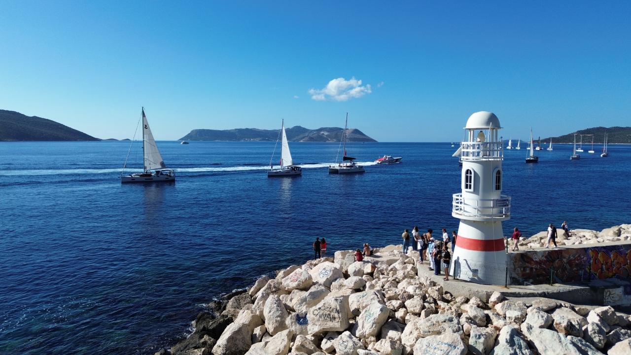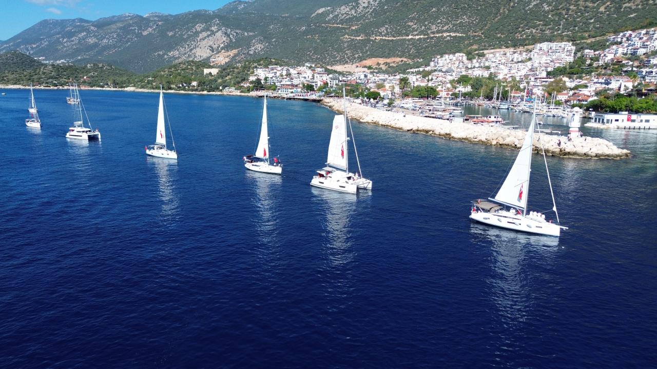 Cumhuriyet Meydanı`ndaki törenin ardından Türk bayraklarıyla süslenen 65 tekne, yat limanından hareket edip Kaş Limanı açıklarına gelerek denizde görsel şölen sundu.