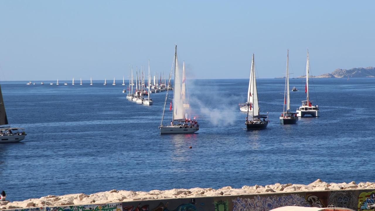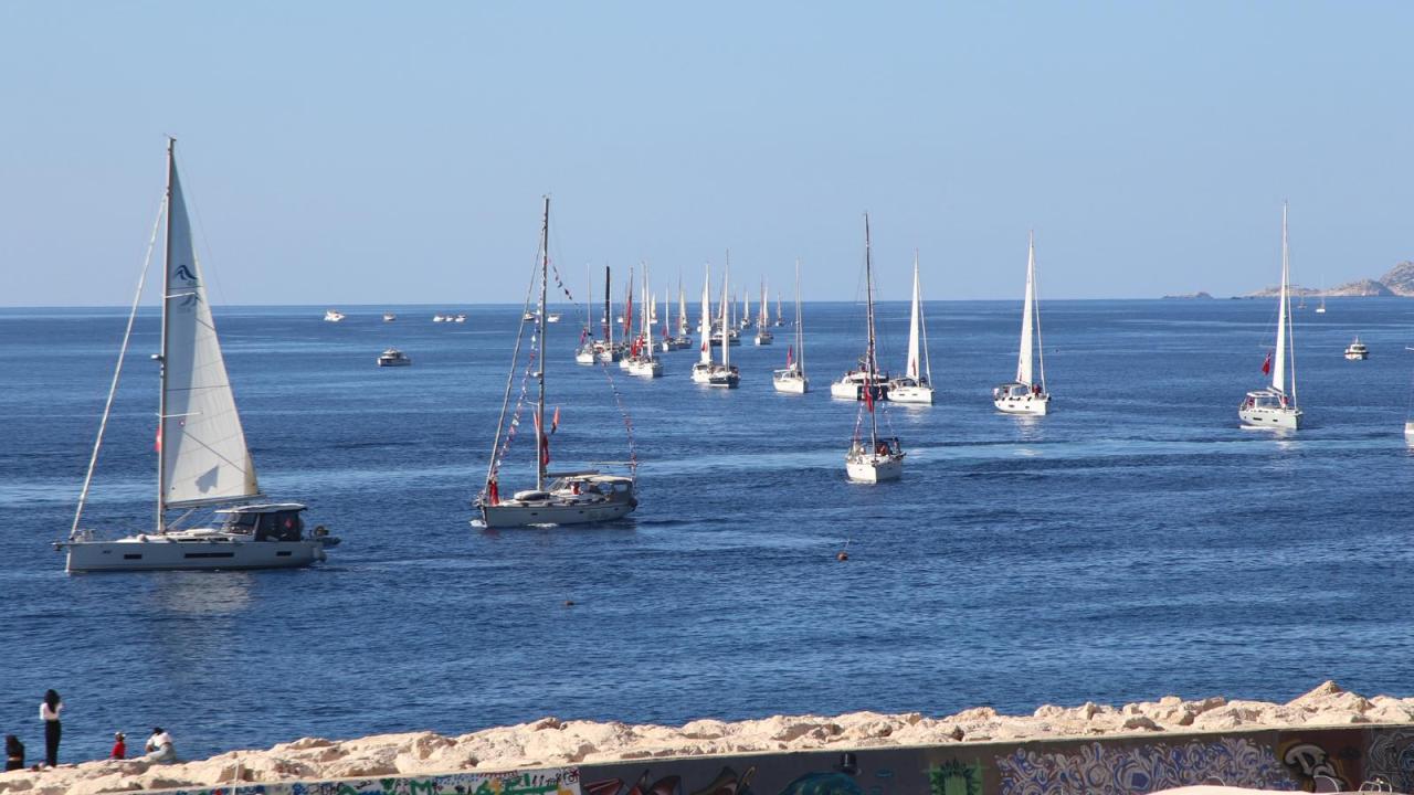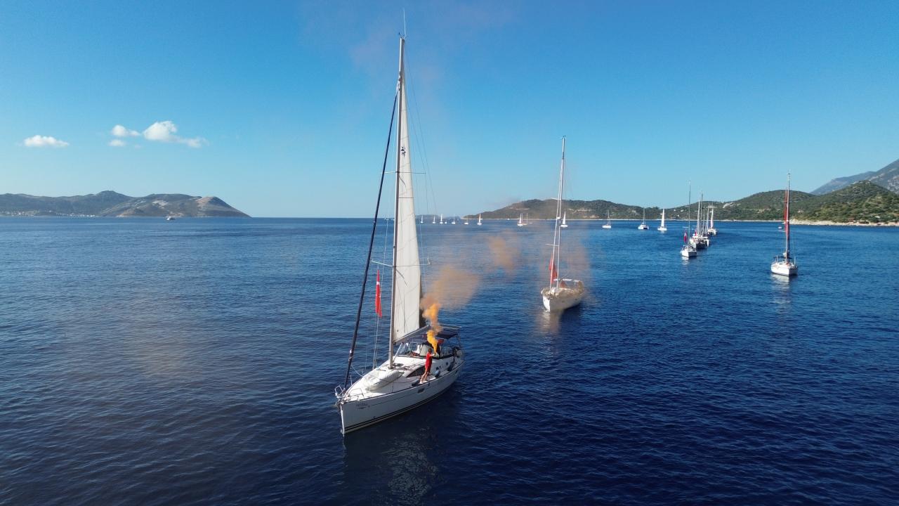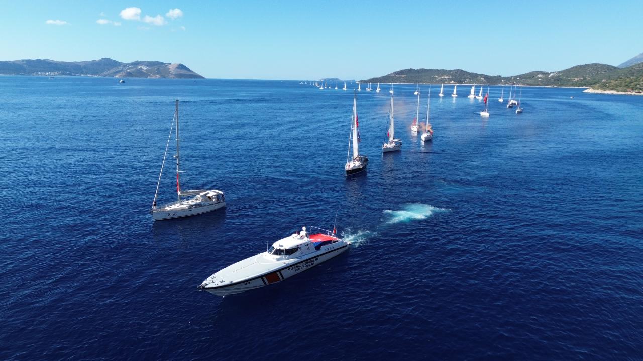 Cumhuriyet Meydanı`ndaki törenin ardından Türk bayraklarıyla süslenen 65 tekne, yat limanından hareket edip Kaş Limanı açıklarına gelerek denizde görsel şölen sundu.