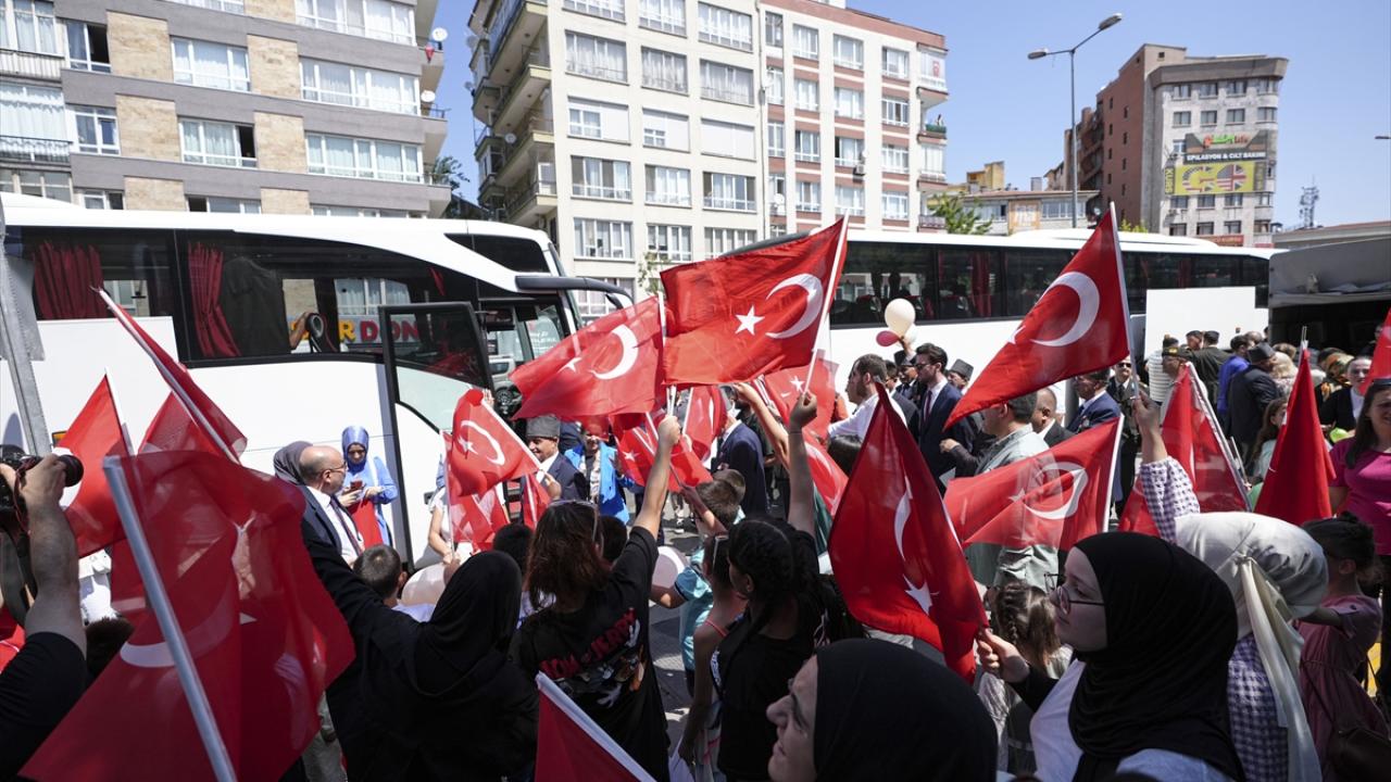 Bir süre sonra otobüslere binen gaziler, Saray Engelsiz Yaşam ve Bakım Rehabilitasyon Merkezi Mehteran Takımı ve çocuklar eşliğinde uğurlandı.
