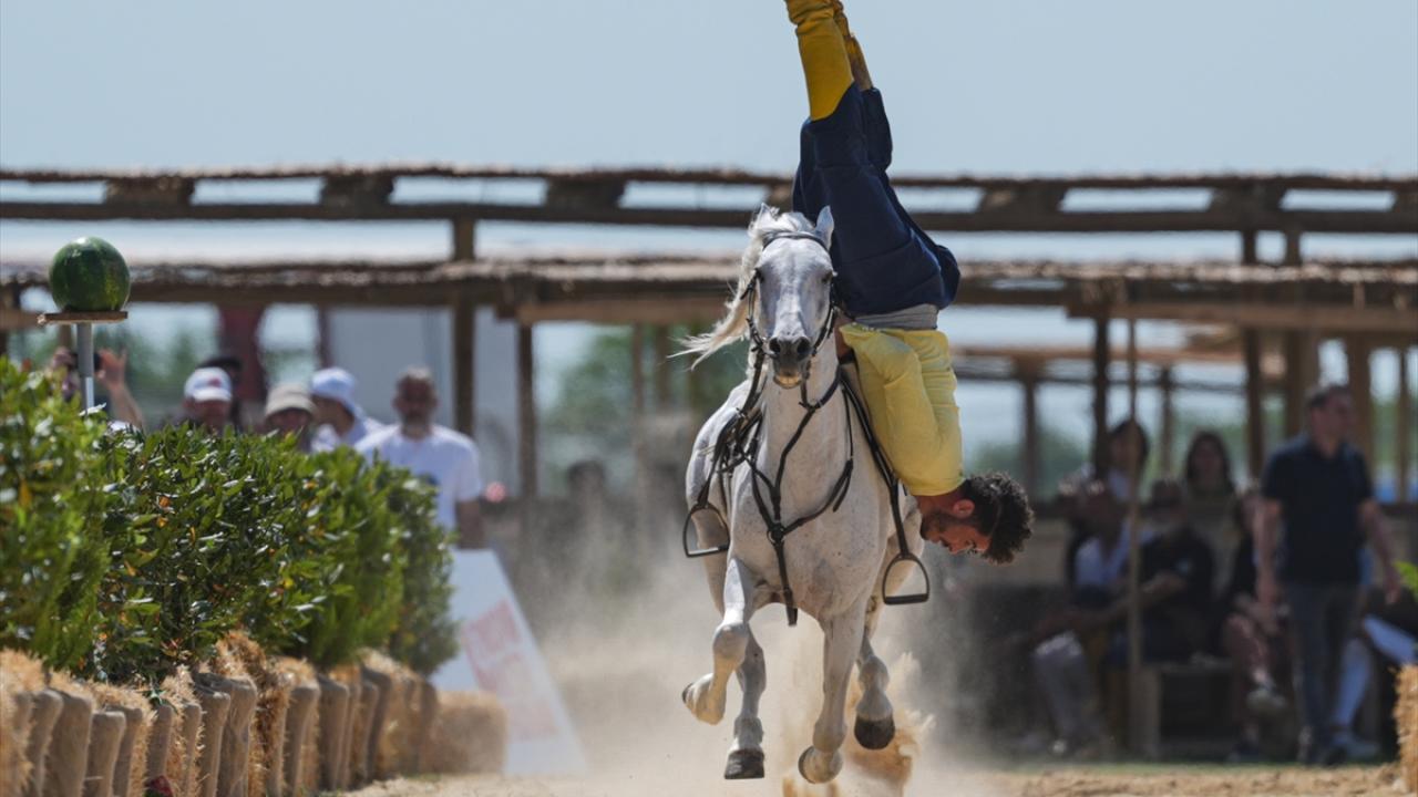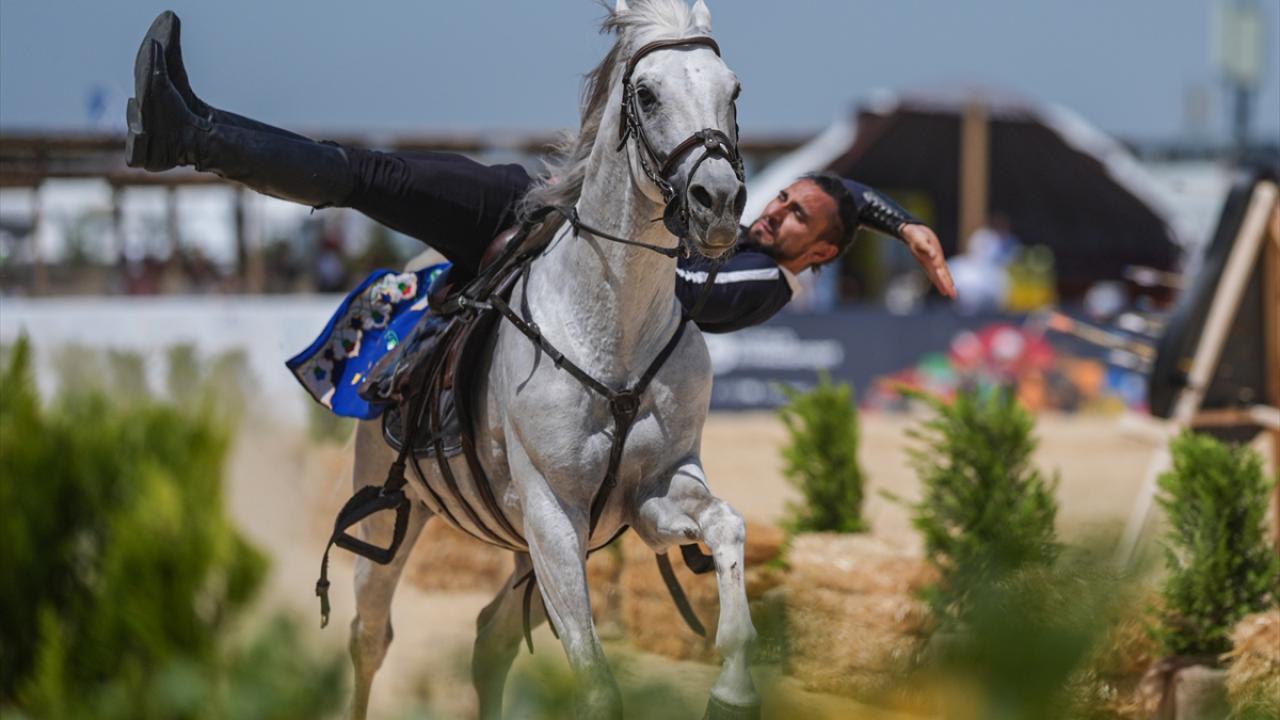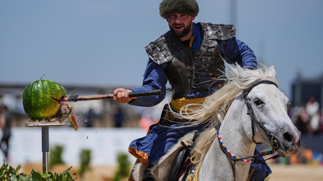 Dünya Etnospor Konfederasyonu tarafından düzenlenen 6. Etnospor Kültür Festivali'nde Balıkesir Karasi Atlı Binicilik ve Savaş Sanatları Kulübü, Türklerin kadim savaş sanatlarını canlandırdı.