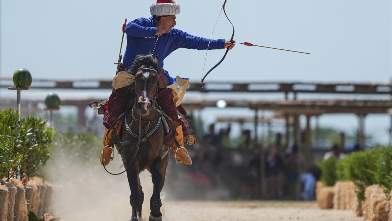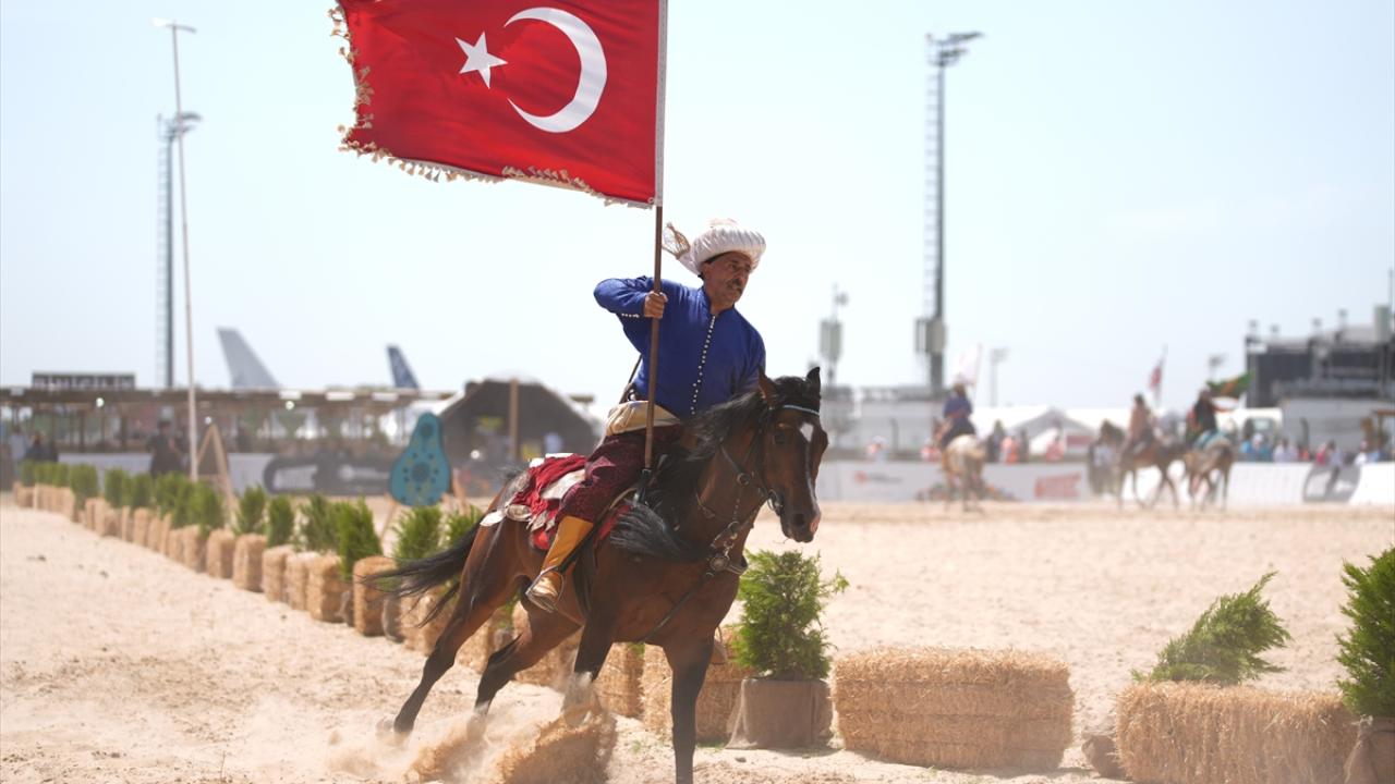 Atatürk Havalimanı`nda gerçekleştirilen festivalin atlı sporlar alanında gerçekleştirilen gösteride, geleneksel savaş kıyafetleriyle alana çıkan atlı okçular önce tribünleri selamladı. Biniciler daha sonra ilk olarak puta atışı adı verilen gösteride dört nala at sürerken hedeflere ok atışı gerçekleştirdi.