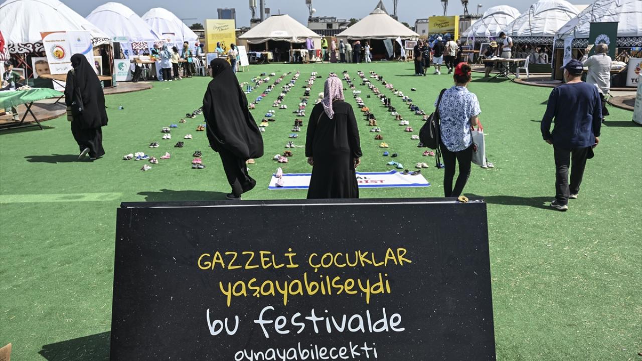 Gazze`de yaşanan dramı ziyaretçilere anlatmaya çalıştıklarını aktaran Gökçimen, "6. Uluslararası Etnospor Kültür Festivali`nde Gazze temasıyla ayakkabıları yerleştirdik. Her biri bir Gazzeli çocuğu temsil ediyor. Gazze`de katledilen çocukların her birini temsilen bir ayakkabı koysaydık, Atatürk Havalimanı ayakkabıyla dolardı. Bu Etnospor`da, `Bütün çocuklar oynamayı hak ediyor` ve `Bütün çocuklar yaşamayı ve öğrenmeyi hak ediyor` teması var. Biz de burada bunu insanlara anlatmaya çalışıyoruz. Buraya misafir gelen çocuklar için her şey düşünülmüş. Allah razı olsun Gazze de unutulmadı. Girişe, `Gazzeli çocuklar yaşayabilseydi sizin gibi bu festivali gezebileceklerdi` diye bir not bıraktık. Bu ayakkabılar Gazzeli çocukları temsil ediyor." ifadelerini kullandı.