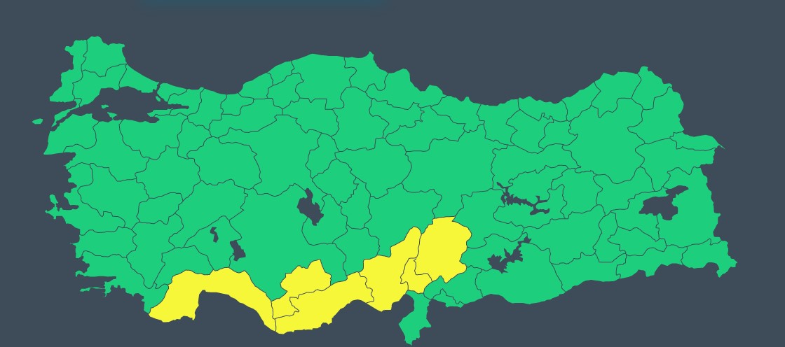 Meteoroloji'nin 'sarı' kodla uyardığı Akdeniz Bölgesi'nin iç kesimlerinde fırtına bekleniyor.