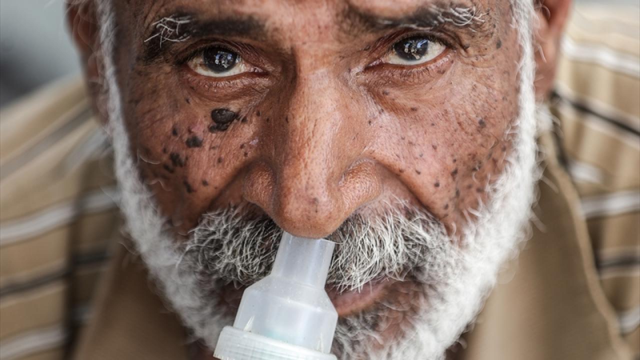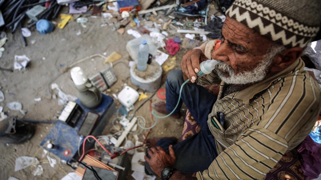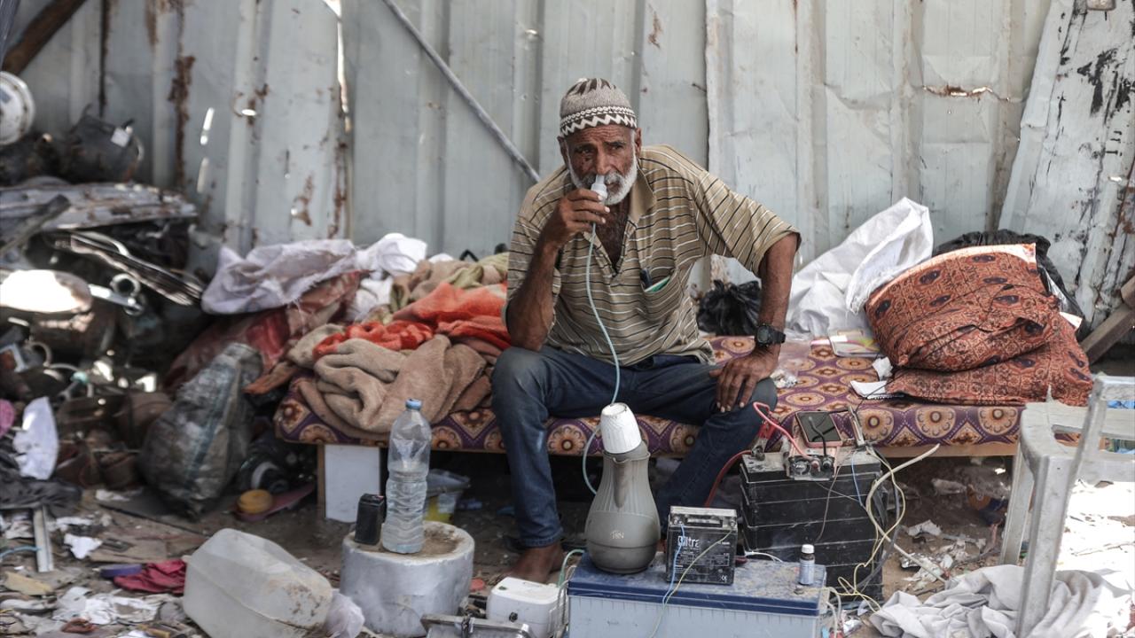 Gazze Şeridi`nin orta kesiminde derme çatma bir çadırda yaşayan 60 yaşındaki akciğer hastası Filistinli Aslan Abu Jama, elektrik kesintileri nedeniyle nebulizatör cihazını akü ile çalıştırarak yaşam mücadelesi veriyor.