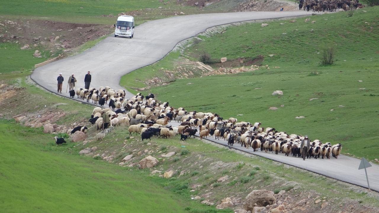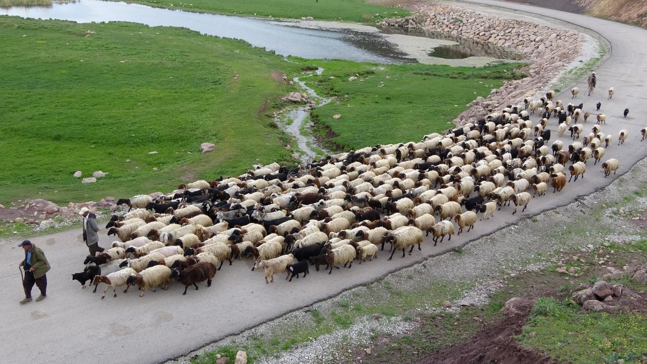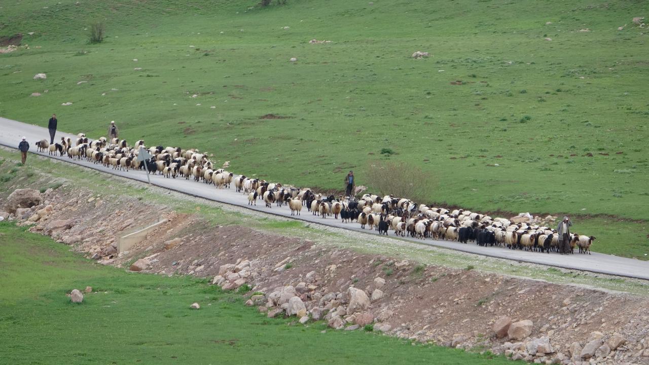Derecik ilçesinde kış boyunca hayvanlarına bakan göçerler, ilkbaharın başlamasıyla Yüksekova’ya doğru yol aldı.