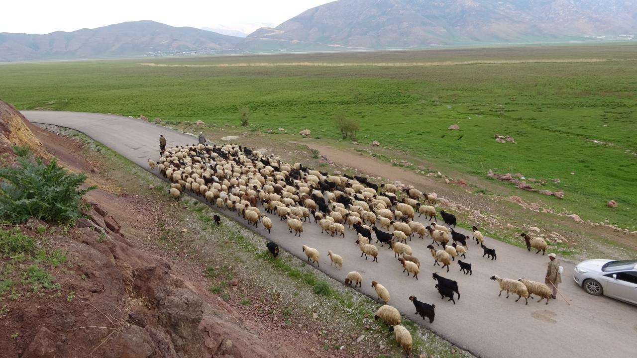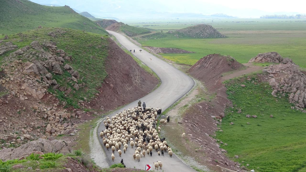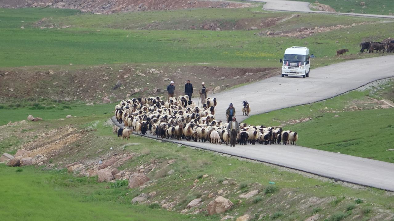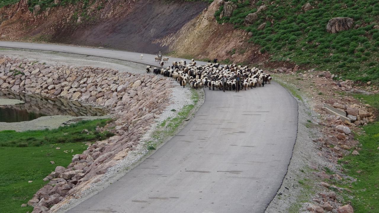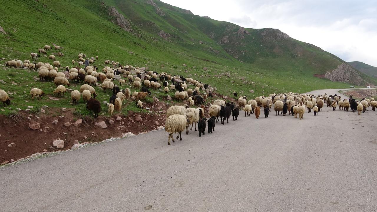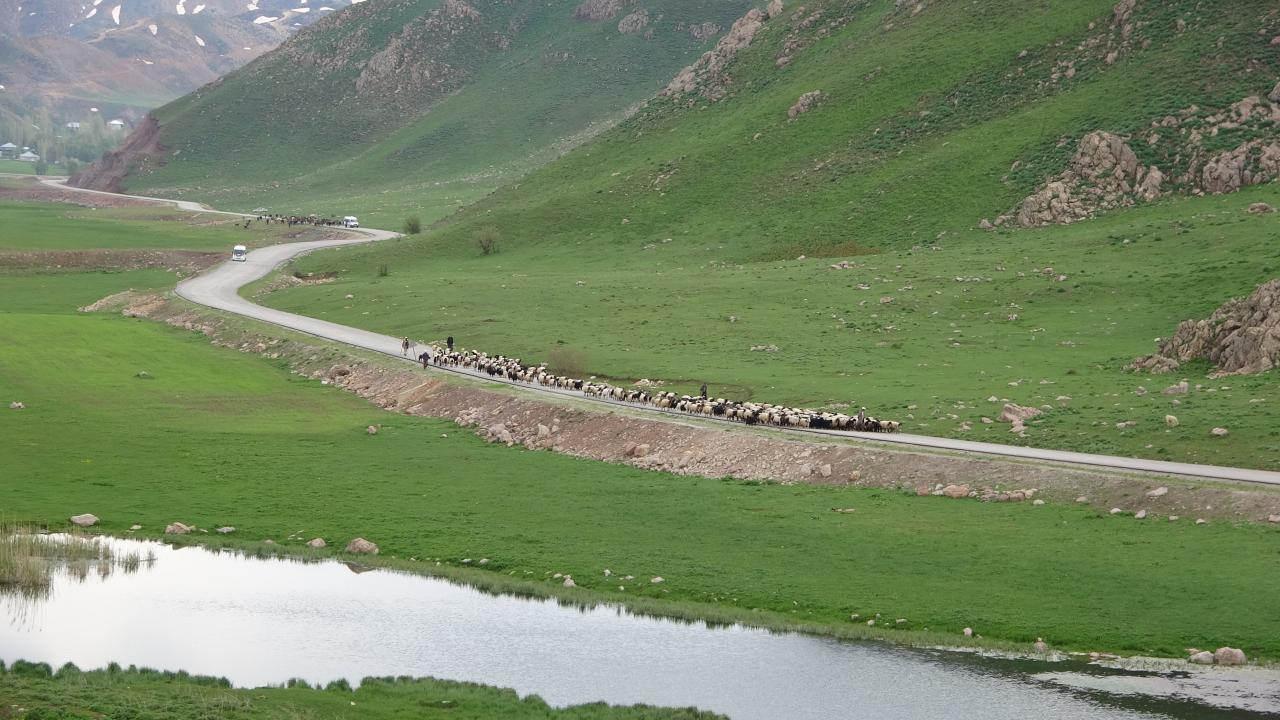 2 bin 500 rakımlı Doski Vadisi`ne doğru yol alan göçerlerin 300 koyunla karayolundaki yolculuğu ise güzel görüntüler oluşturdu.