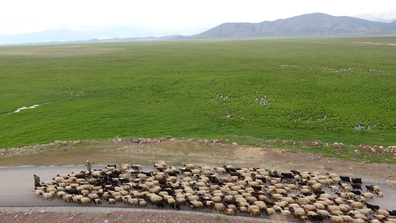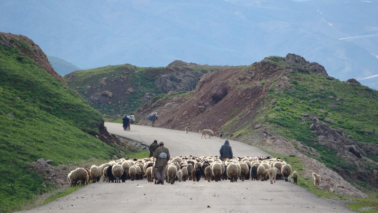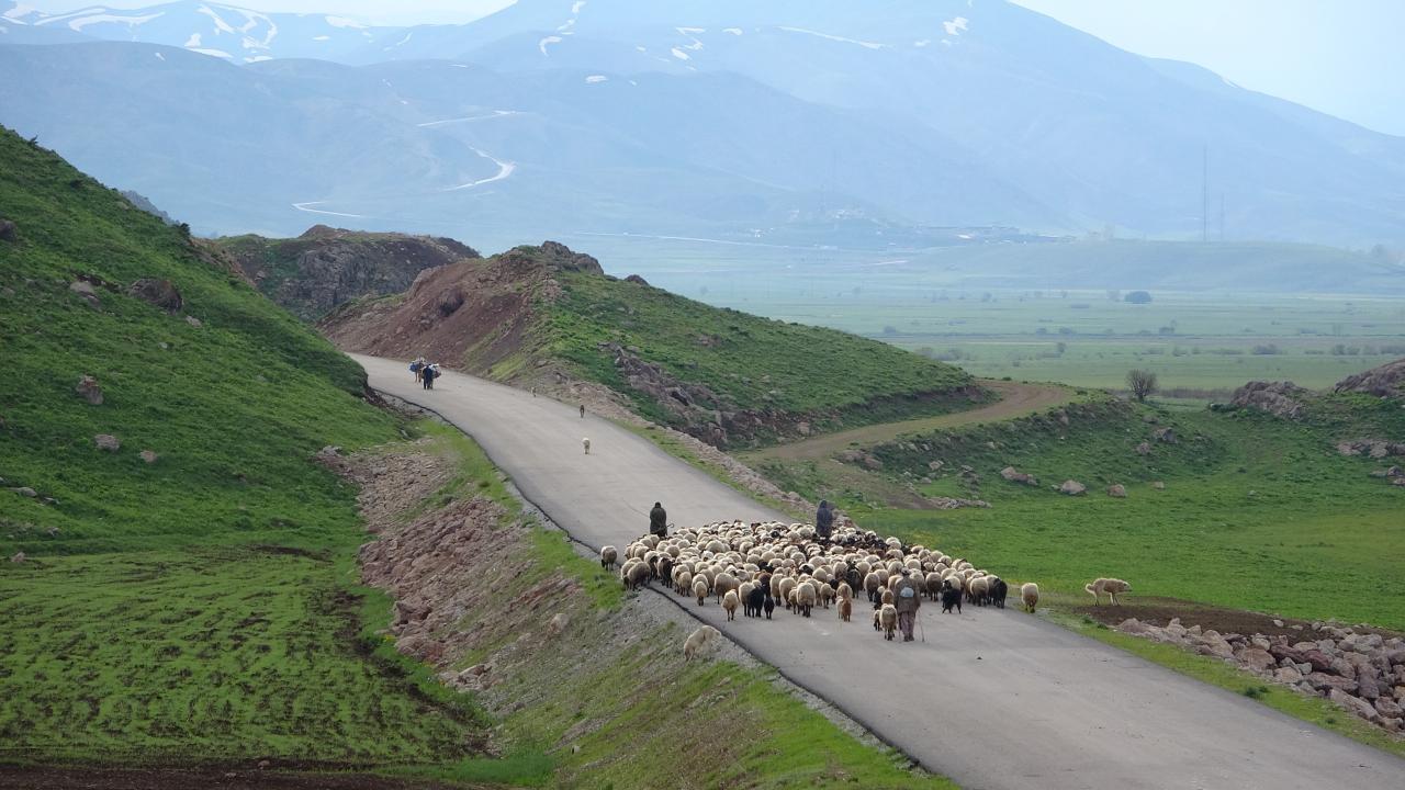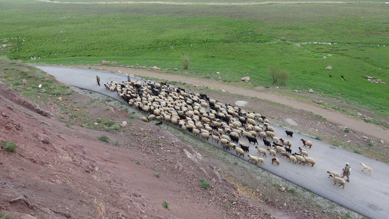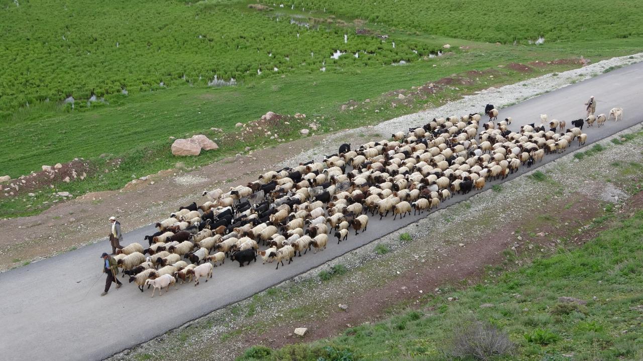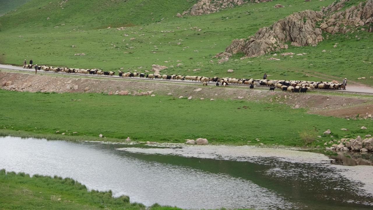 2 bin 500 rakımlı Doski Vadisi`ne doğru yol alan göçerlerin 300 koyunla karayolundaki yolculuğu ise güzel görüntüler oluşturdu.