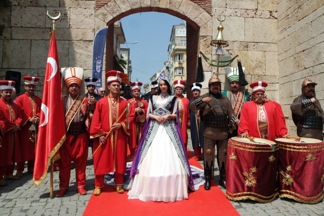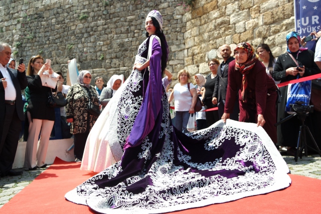 Bursa'da, girişimci Vildan Yolcu tarafından 62 bin 23 beyaz inciyle hazırlanan "Osmanlı Nilüfer Hatun" olarak isimlendirilen kaftan, Guinness Rekorlar Kitabı'na yapılacak başvuru öncesi kamuoyuna tanıtıldı.