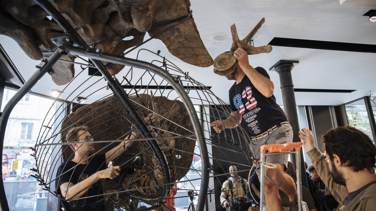 66 milyon yıllık olan "Büyük John" isimli dev dinozorun iskeleti, Ekim ayındaki açık artırma öncesinde birleştirildi. İskelet, Fransa'nın başkenti Paris'te meraklılarla buluştu.