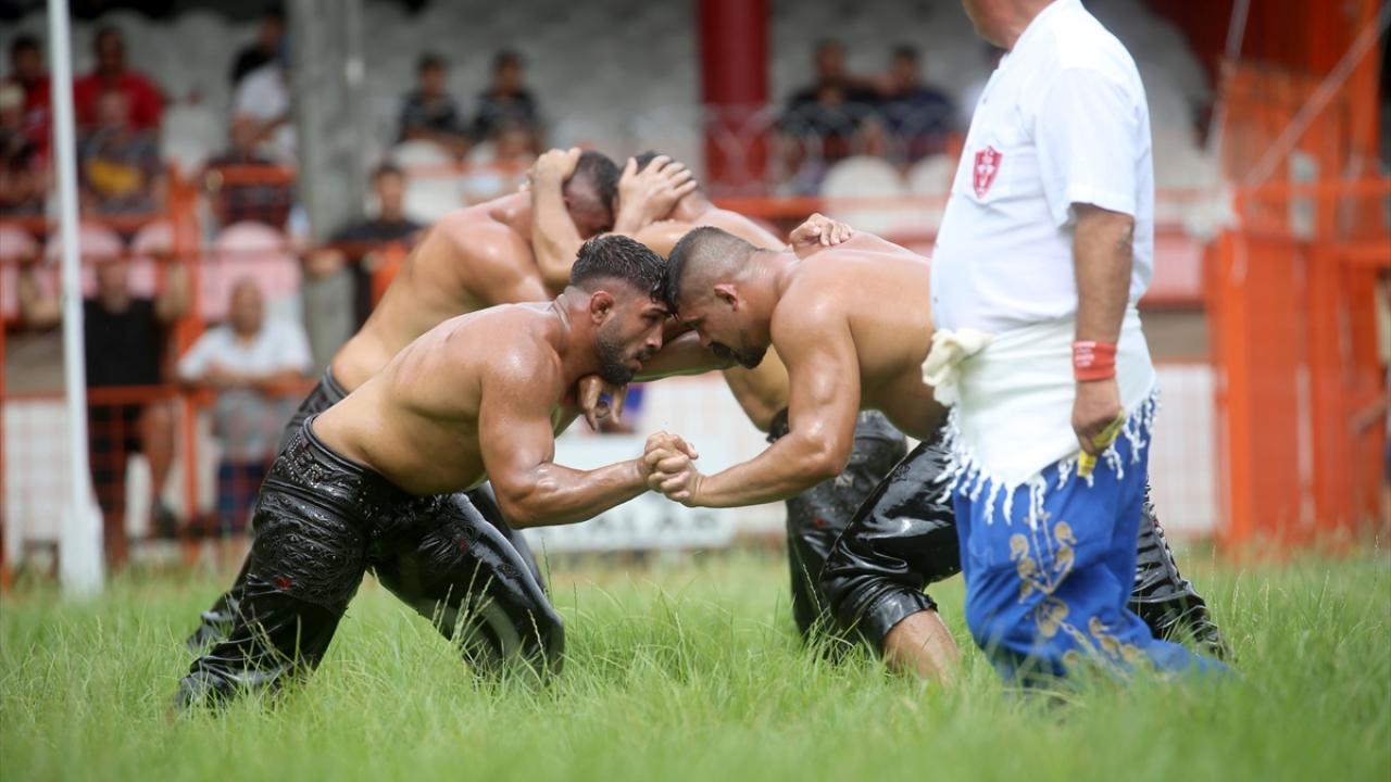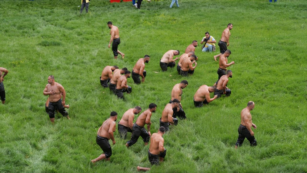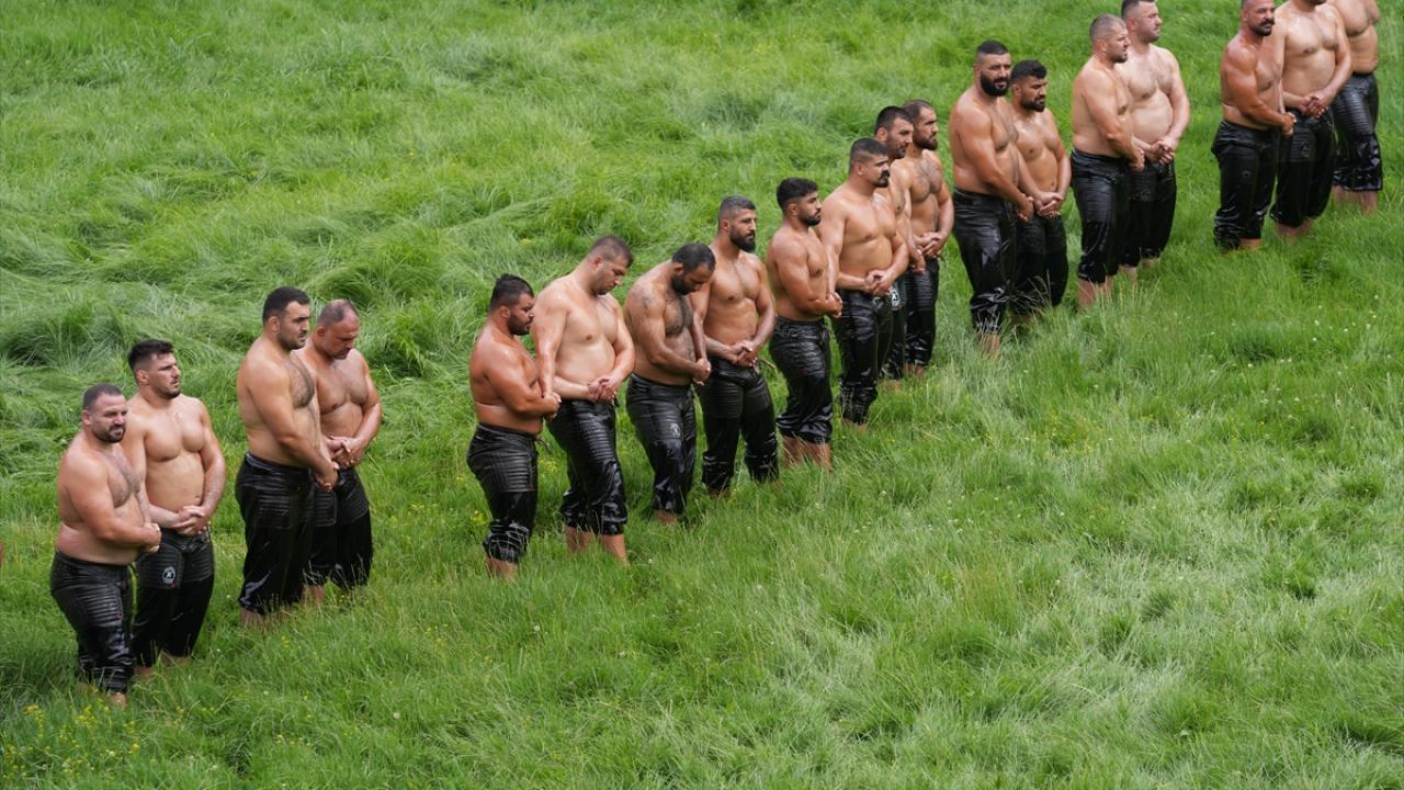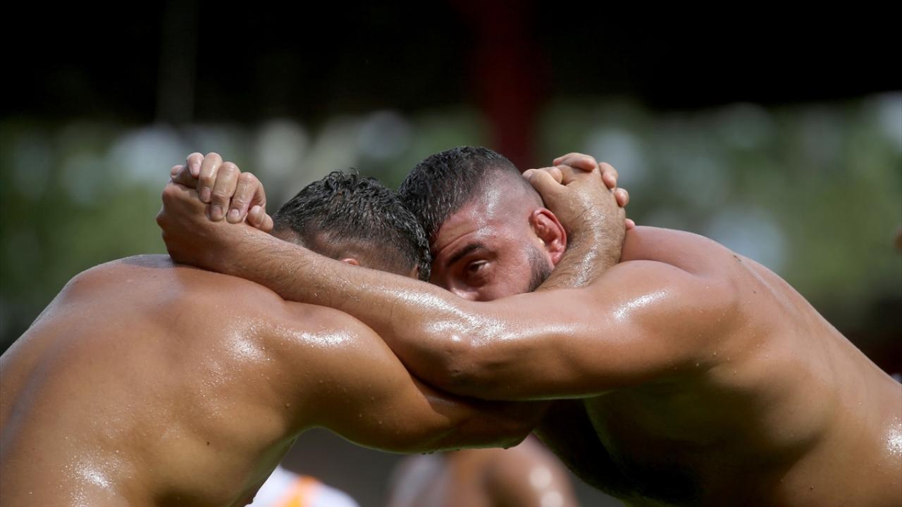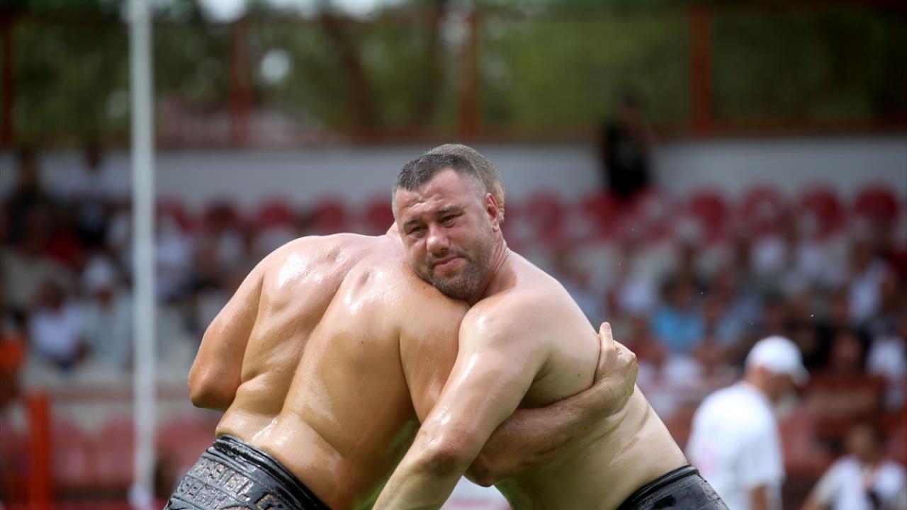 Pehlivanlar, salavatlanmaları ve peşrevlerinin ardından güreşe başladı.