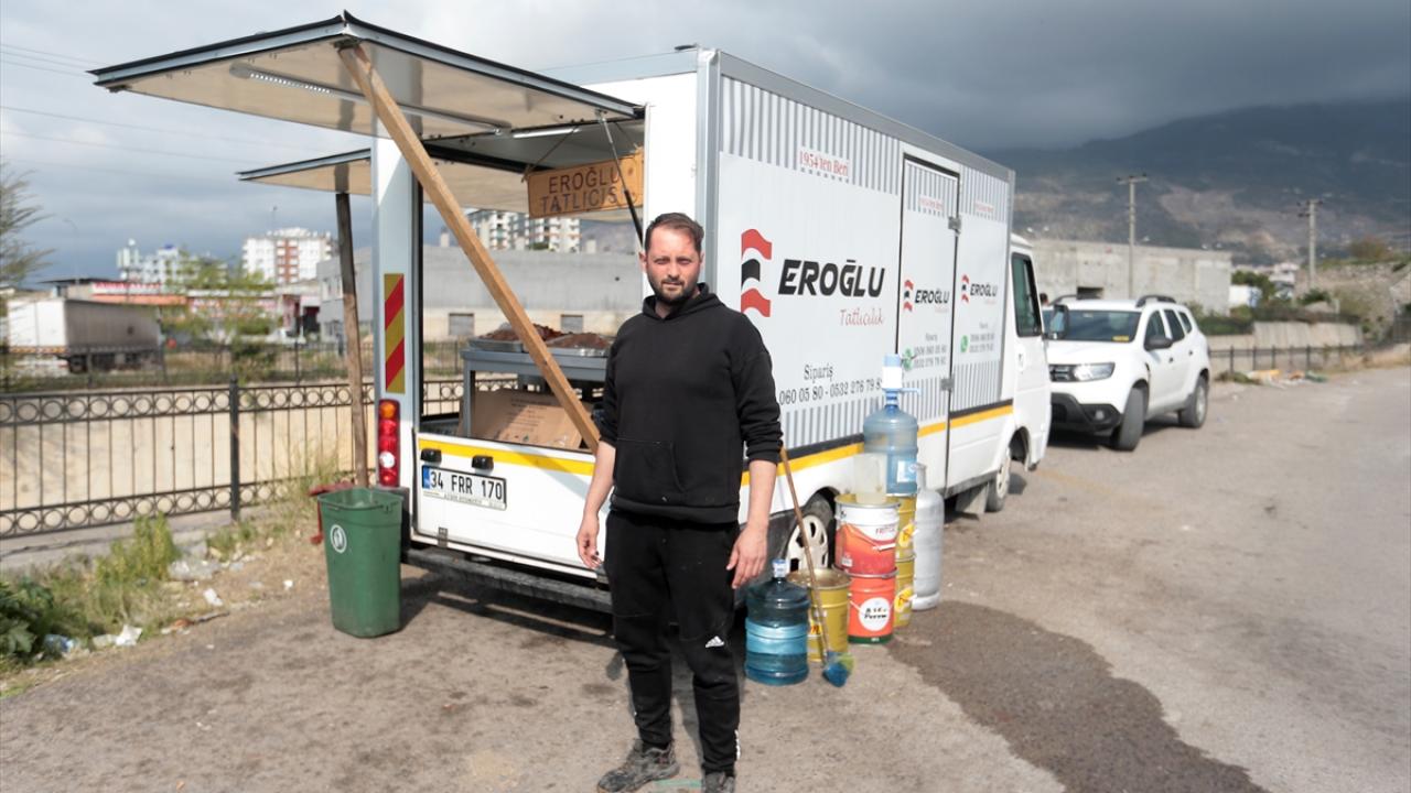 Vefat eden yakınlarını defnettikten sonra dükkanını yeniden ayağa kaldırmaya karar vererek personelini toplayan Eroğlu, çevresindekilerin de desteğiyle temin ettiği iki aracı seyyar tatlıcıya çevirdi.
