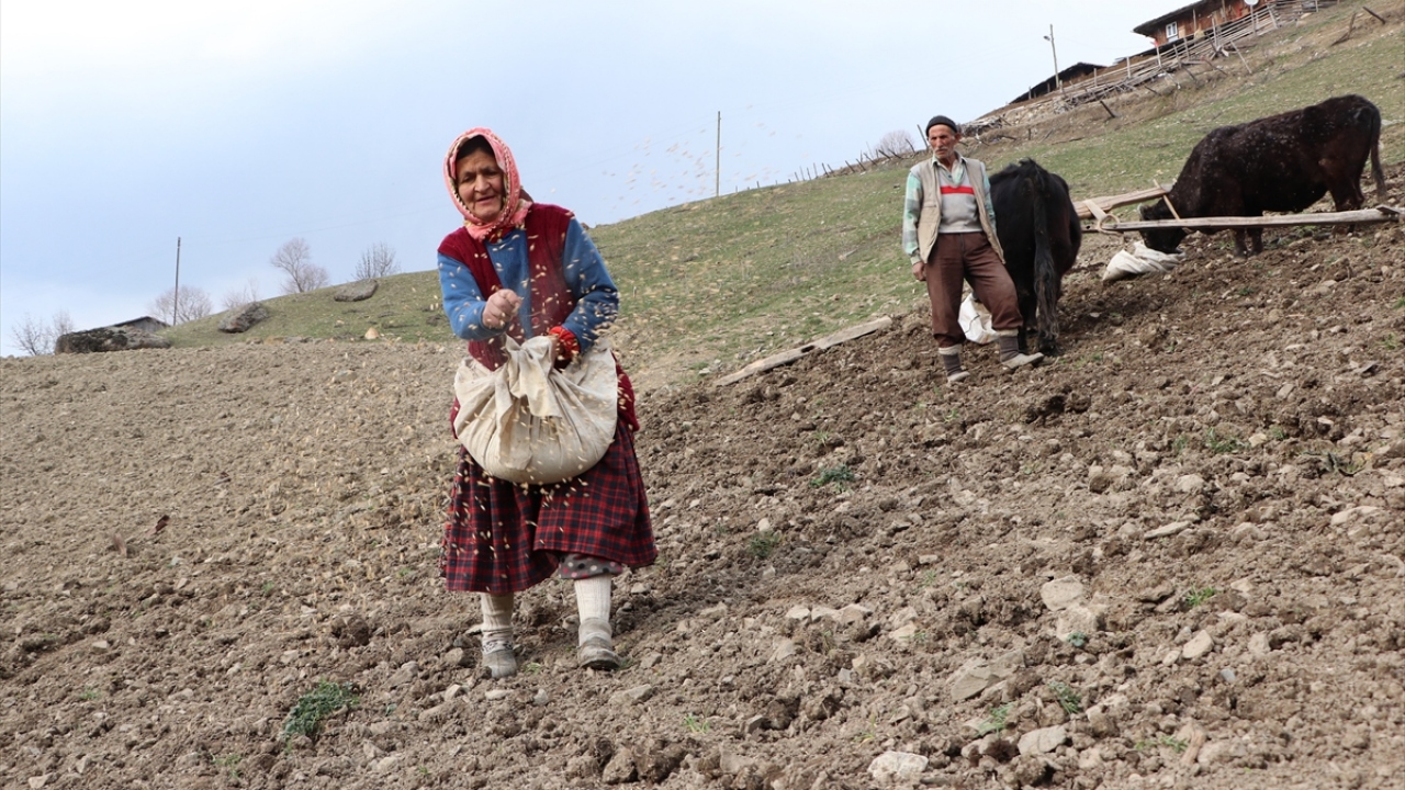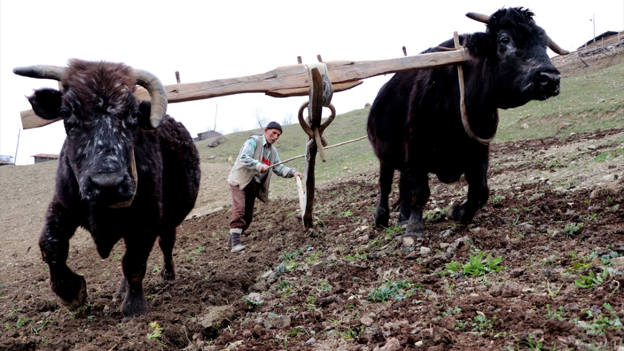 Öküzlerin yaşlı olması nedeniyle bakımlarını titizlikle yapan Erim, onları elleriyle besliyor. Erim, tarlasını öküzleriyle kara sabanla sürüyor.