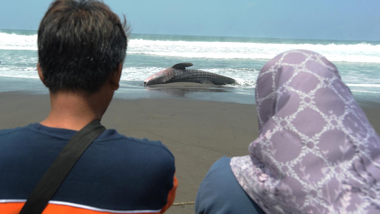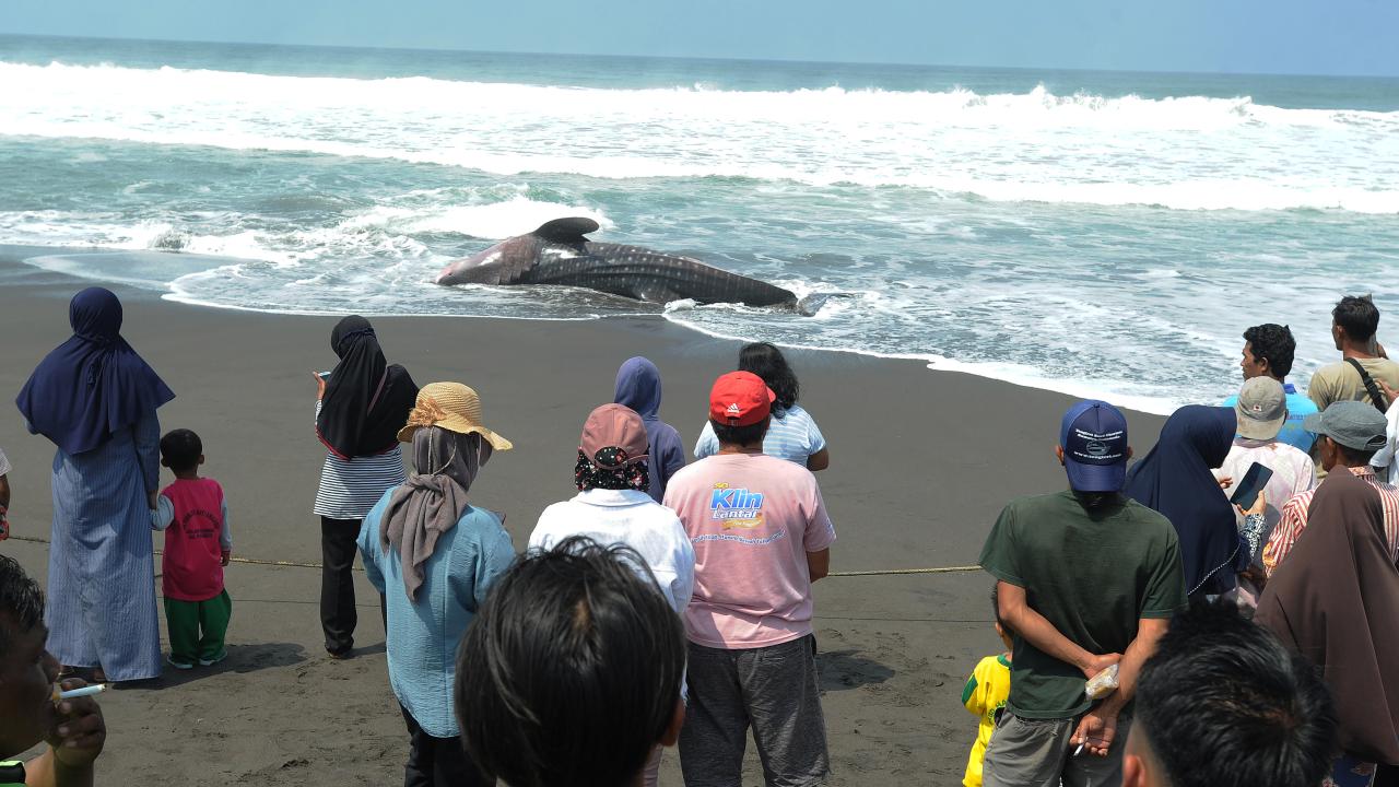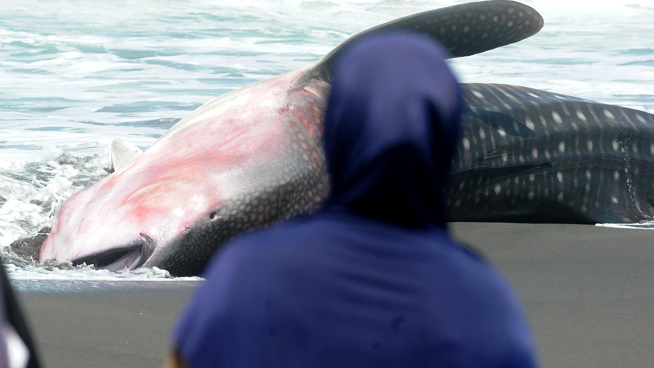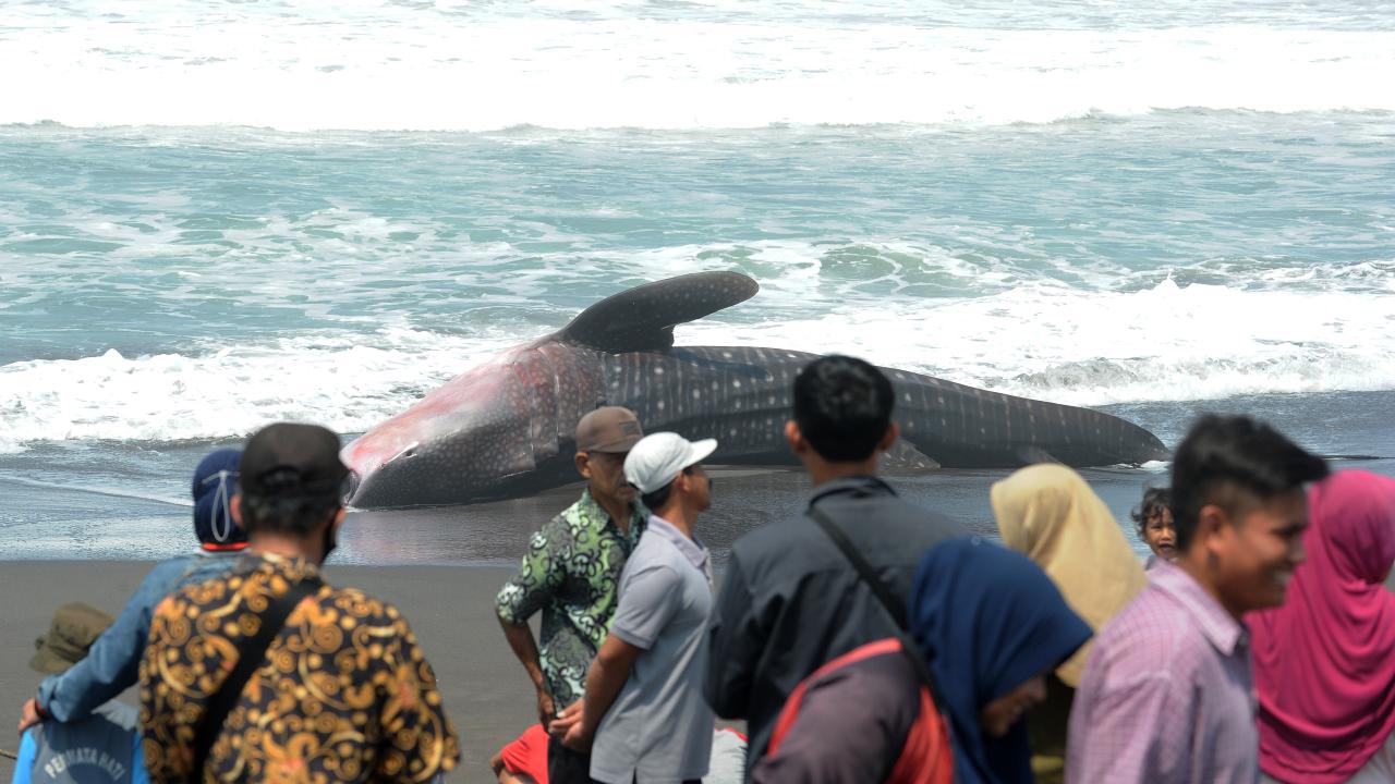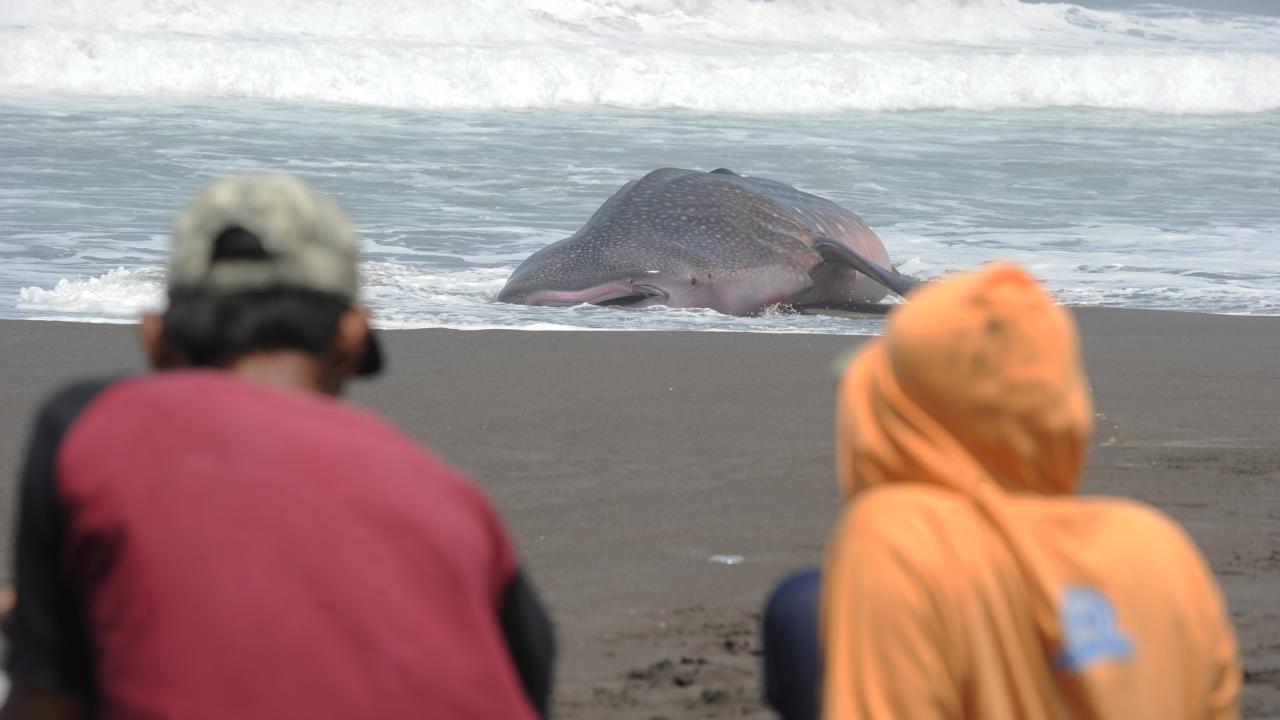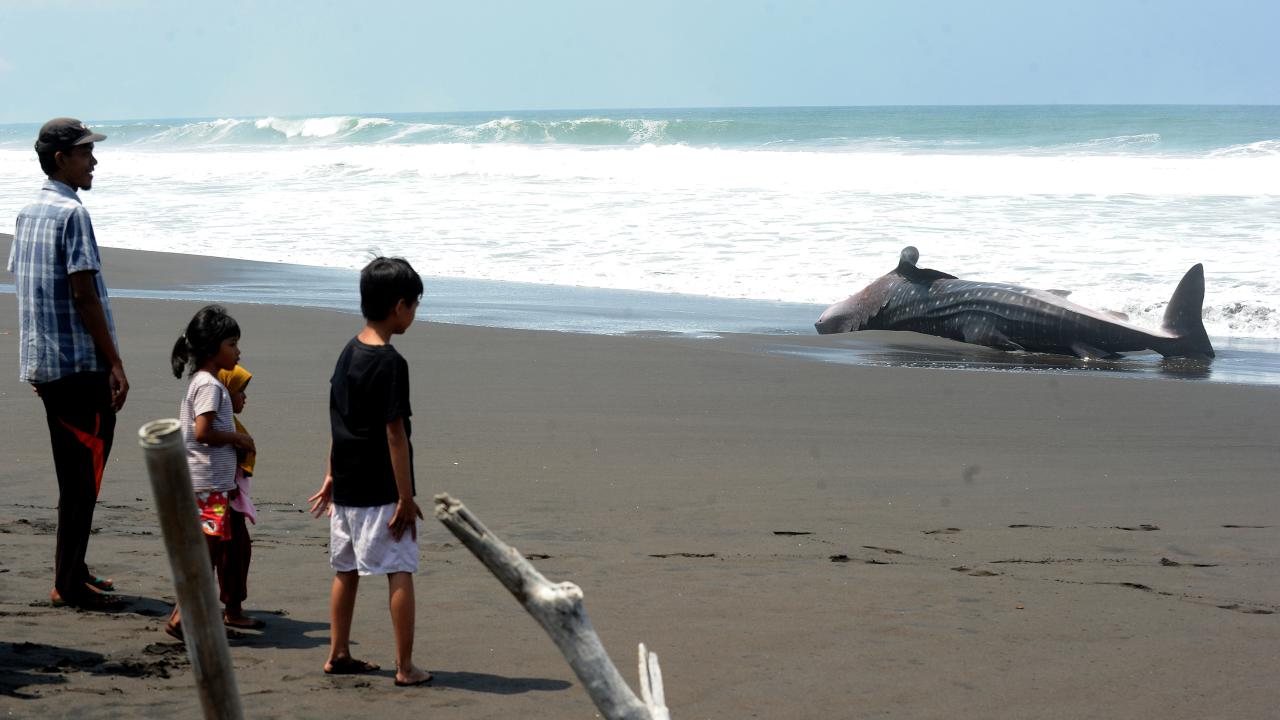 Endonezya'nın Orta Java bölgesinin Purworejo kentinde yer alan Ketawang Plajı'nda, 7.4 metre uzunluğunda ve yaklaşık 2 ton ağırlığında bir balina köpek balığı kıyıya vurdu.