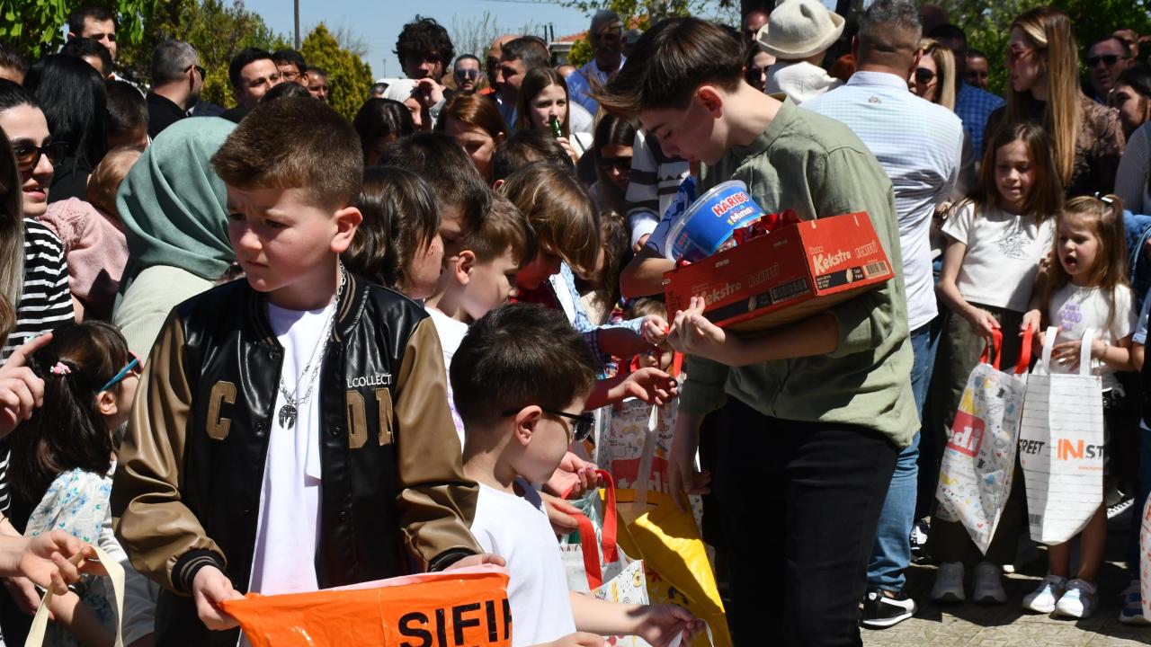 Ergene`nin Ahimehmet Mahallesi`nde, 78 yıldır devam eden, mahallelinin kendi aralarında topladıkları paralarla aldıkları çeşitli hediyelerin çocuklara dağıtıldığı Ramazan Bayramı geleneği bu yıl da sürdü.