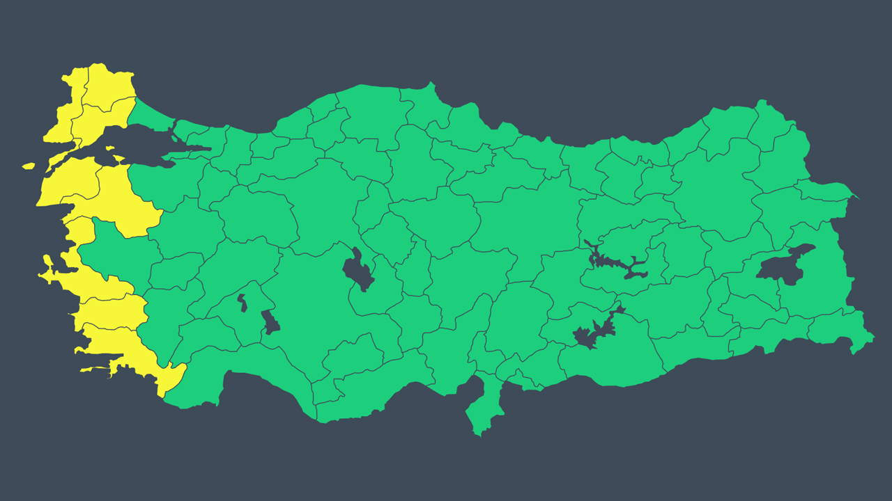 Hava durumu potansiyel tehlikelidir. Tahmin edilen meteorolojik hadise olağandışı olmamakla birlikte, meteorolojik şartlardan etkilenebilecek faaliyetler konusunda dikkatli olunmalıdır.