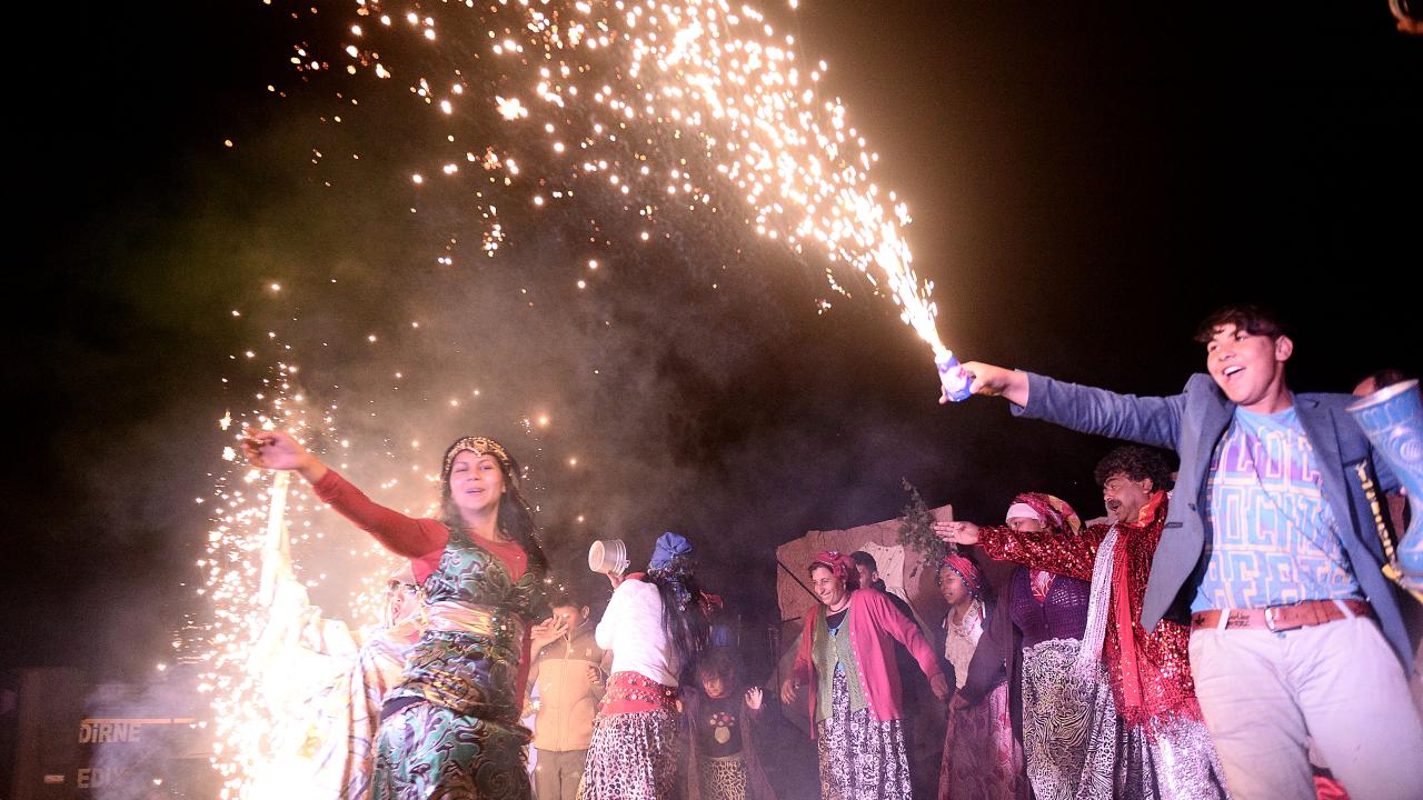 Tunca Nehri kenarında kutlanan Kakava Şenliklerine katılanlar dilek ağacına kurdele bağlayarak dilek dilerken, çaldıkları enstrümanlar eşliğinde dans etti.