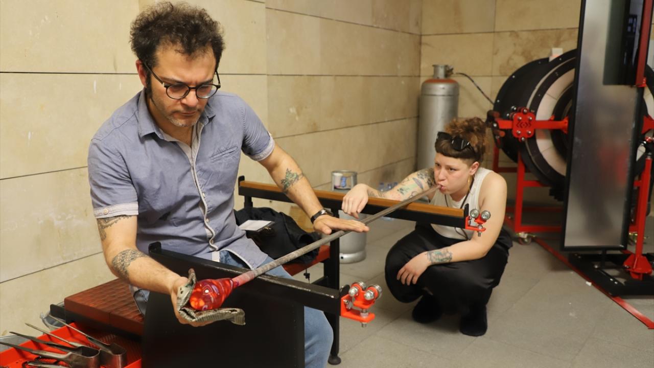 Denizli'de, Büyükşehir Belediyesinin ev sahipliğinde, Karma Tasarım Atölyesi organizasyonu ile Pamukkale Kültür Merkezi'nde, bu yıl sekizincisi düzenlenen Uluslararası Denizli Cam Bienali'nde sanatçılar, çalışmalarını katılımcıların beğenisine sundu.