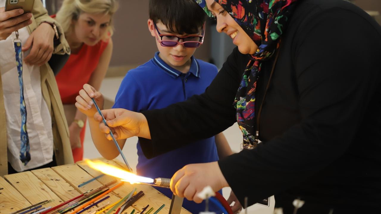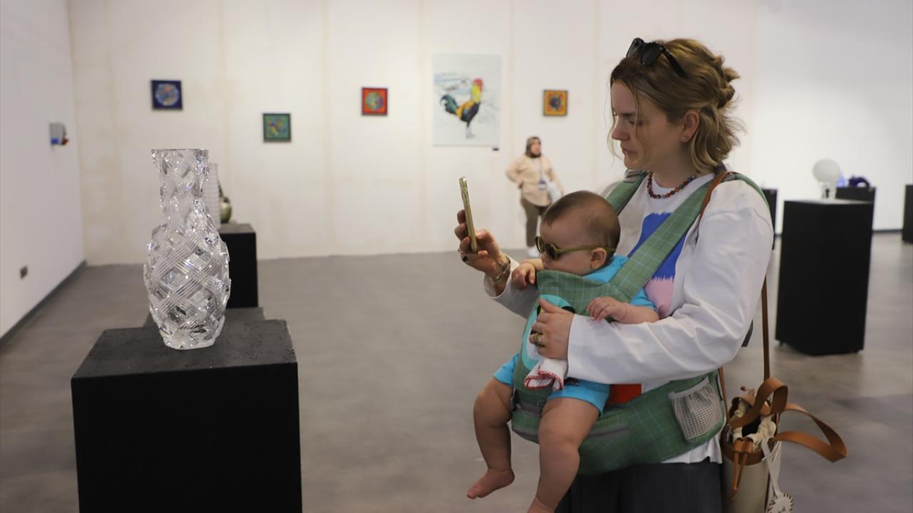 Bienalin ilk gününde stantları gezen ziyaretçiler, sanatçıların cama şekil verdikleri performanslarını ilgiyle izledi.