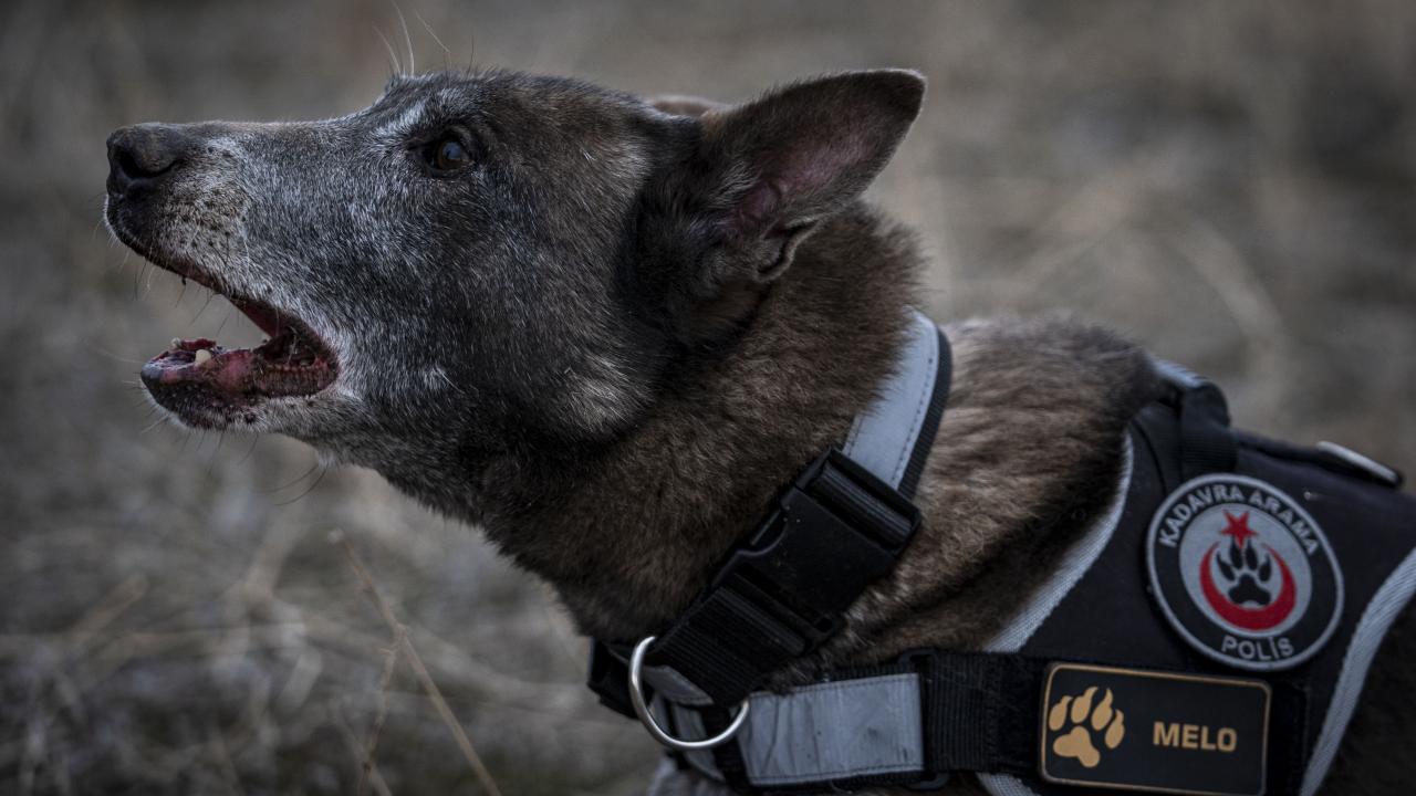 Hassas burunlu "Melo" 2023`te Kahramanmaraş merkezli depremlerde bölgede 50`ye yakın cenazenin yerini tespit etti.