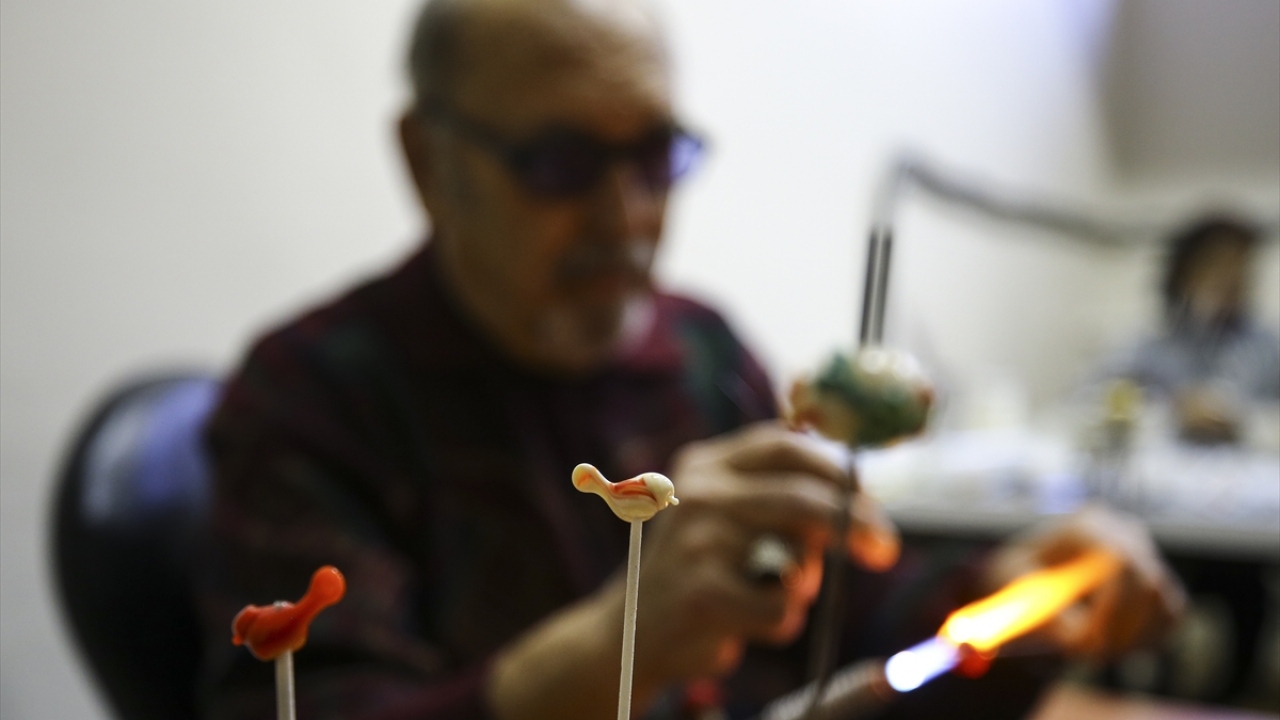 Cam ile yaptığı ürünleri de anlatan Ceyhan, "Nazar boncuğu, çiçek, hayvan figürleri ile anahtarlık yapıyorum. Misafirlerime bunları hediye ediyorum." dedi.