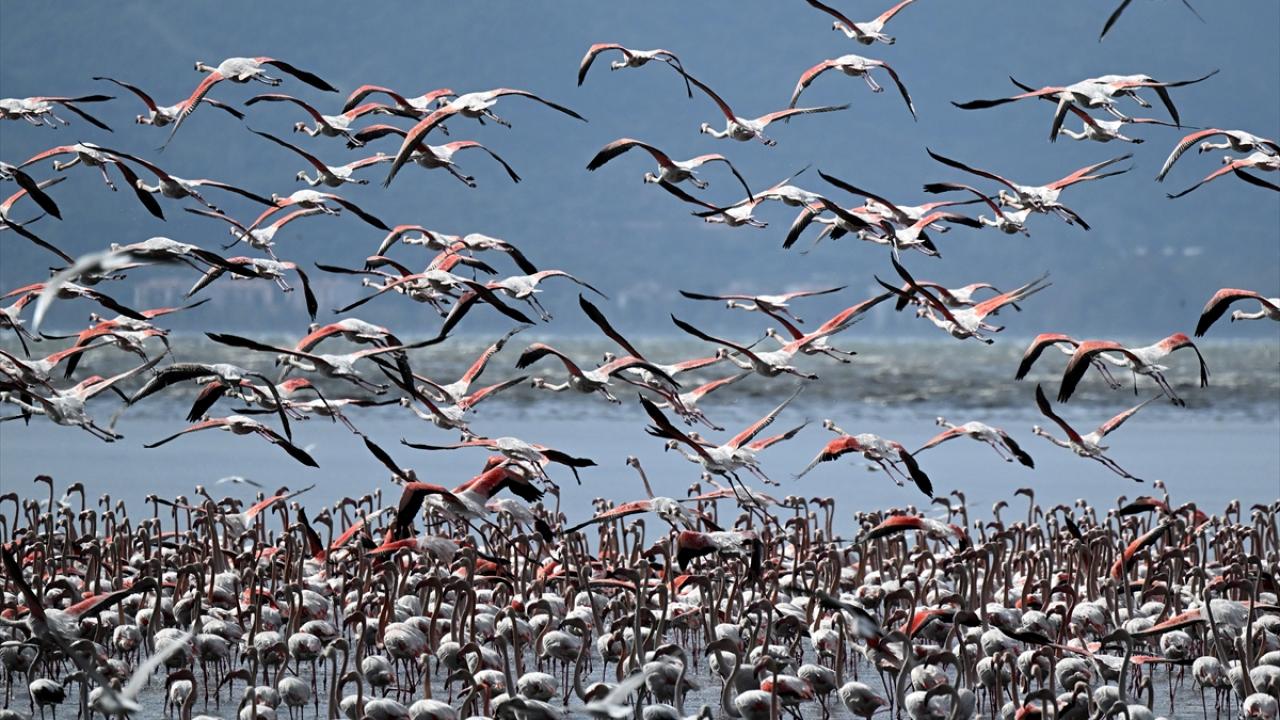 17 Ocak 2023`te Kış Ortası Su Kuşu Sayımı (KOSKS) kapsamında, İzmir Kuş Cenneti`ndeki flamingolar sayıldı. (Arşiv)
