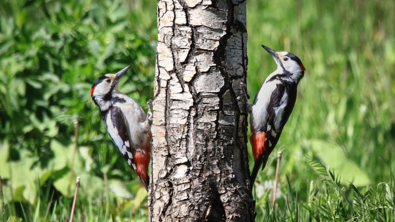16 Haziran 2020`de Türkiye`deki yüzlerce kuş türünden 234`ünün gözlemlenebildiği Van Gölü Havzası`ndaki alaca ağaçkakanlar (dendrocopos syriacus) görüntülendi. (Arşiv)