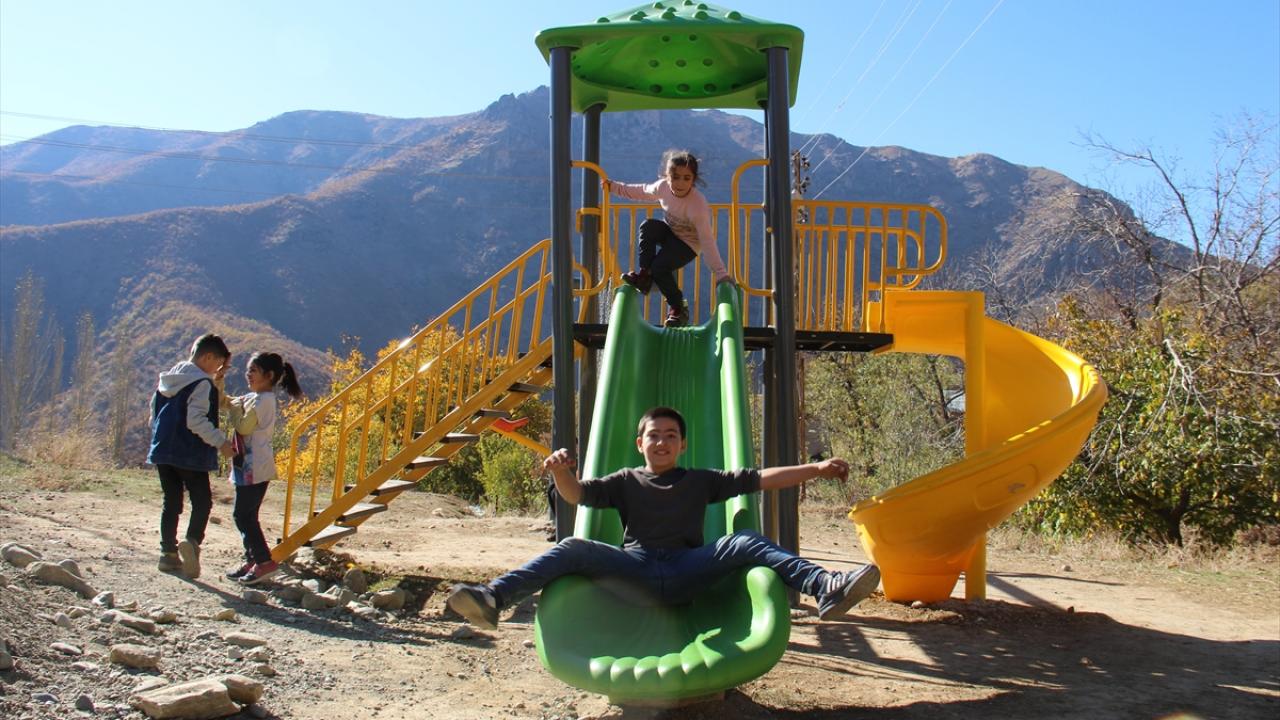 Hakkari'de çocukların sağlıklı ve güvenli ortamda oyun oynamalarını sağlamak için hayata geçirilen "90 köye 90 park" projesi ile köylerde yaşayan çocuklar oyun parkıyla buluşturuldu.