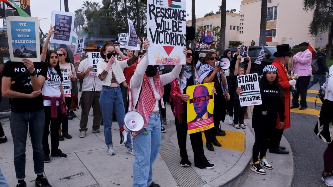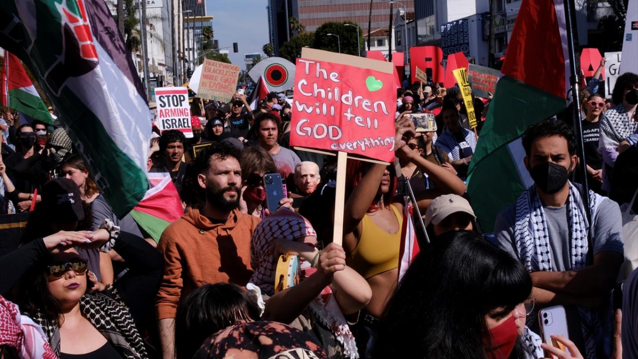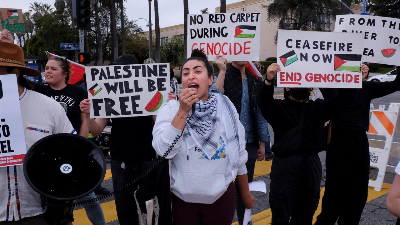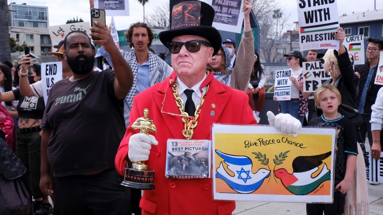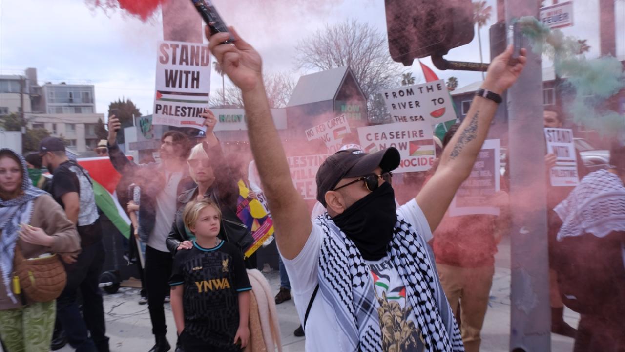 ABD'nin Los Angeles kentinde, Hollywood Bulvarı'nda bulunan Dolby Theatre'da düzenlenen 96. Oscar Ödül Töreni sırasında Filistin'e destek gösterisi düzenlendi. Göstericiler, Filistin bayrakları ve pankartlar taşıyarak meşale yaktı. Filistin yanlısı göstericiler Highland Caddesi ve yakınını trafiğe kapattı.