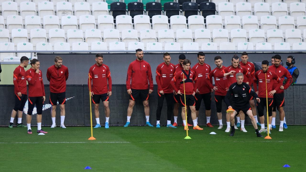 Karşılaşmanın oynanacağı MEDAŞ Konya Büyükşyehir Stadı`nda teknik direktör Stefan Kuntz, yönetiminde gerçekleştirilen antrenmanın ilk 15 dakikası basın mensuplarına açık tutuldu.
