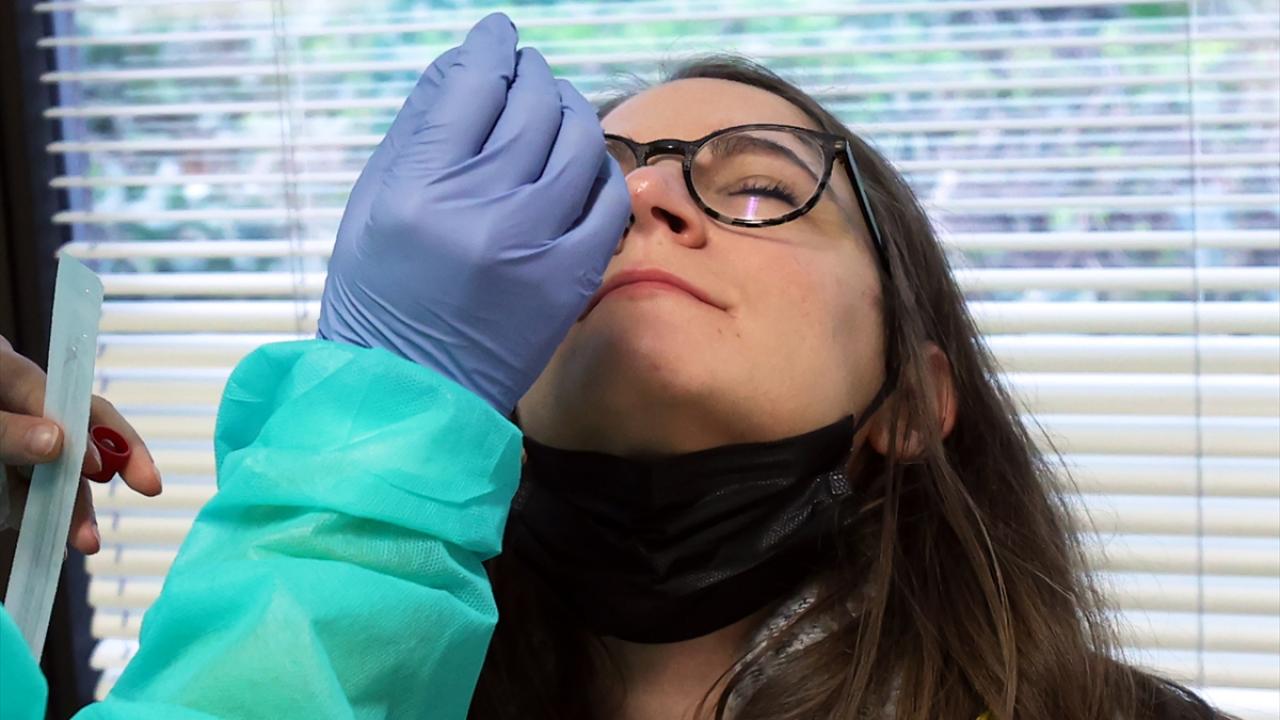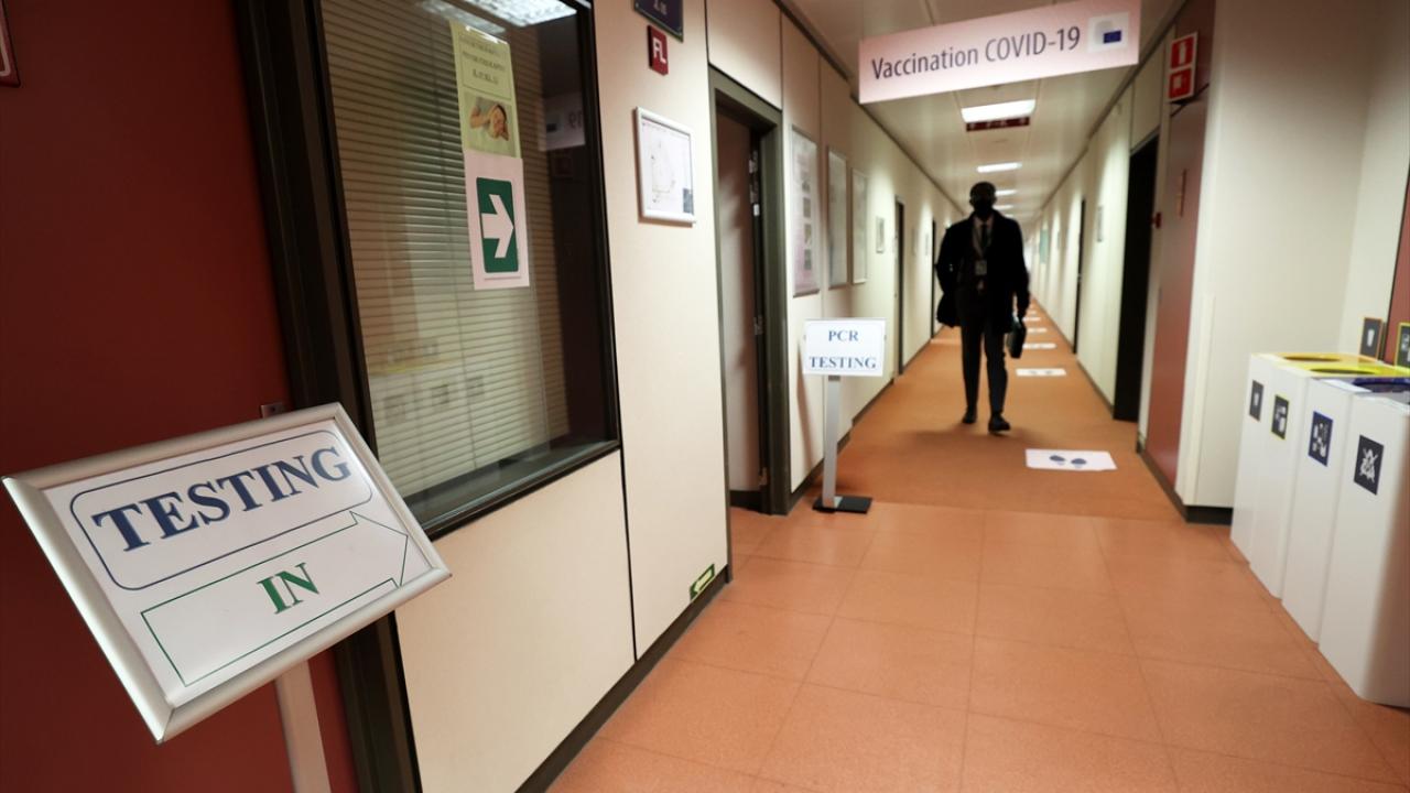 Belçika’nın başkenti Brüksel’de Avrupa Birliği Zirvesi kapsamında basın mensuplarına toplantı öncesi, koronavirüs (Covid-19) testi yapılıyor.