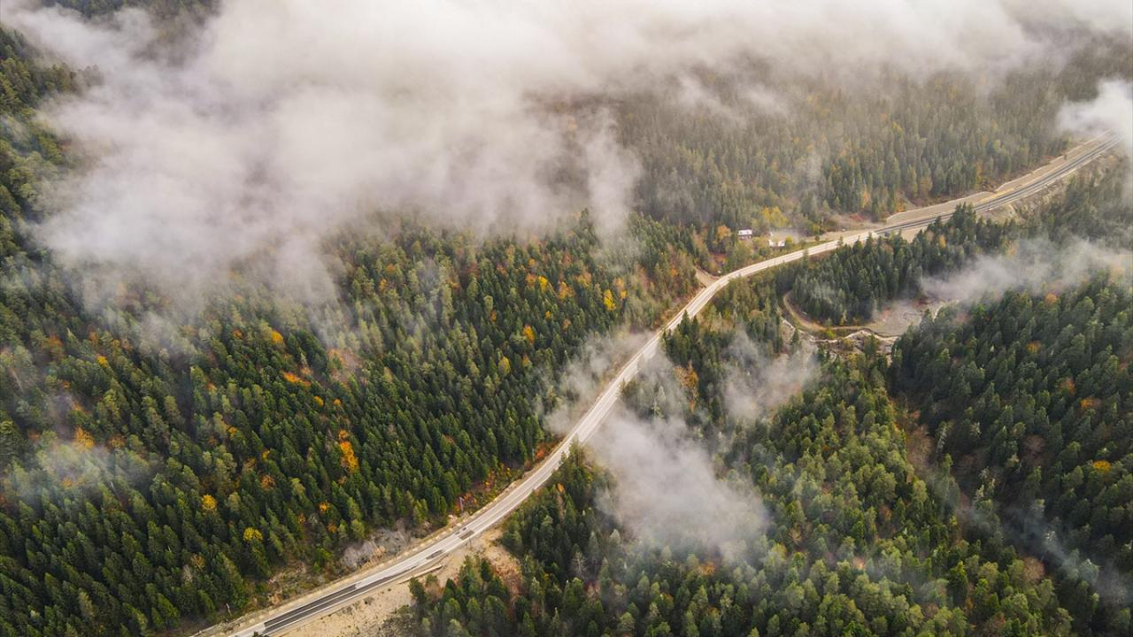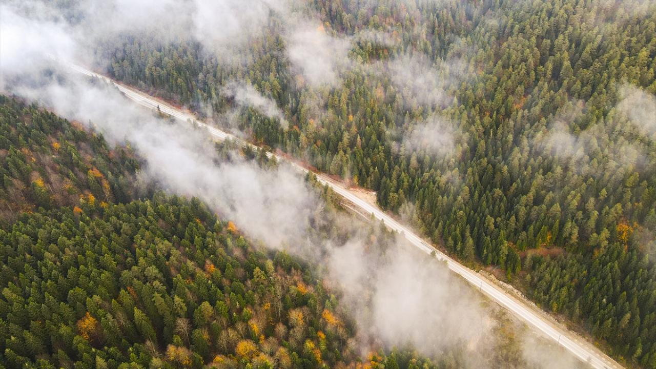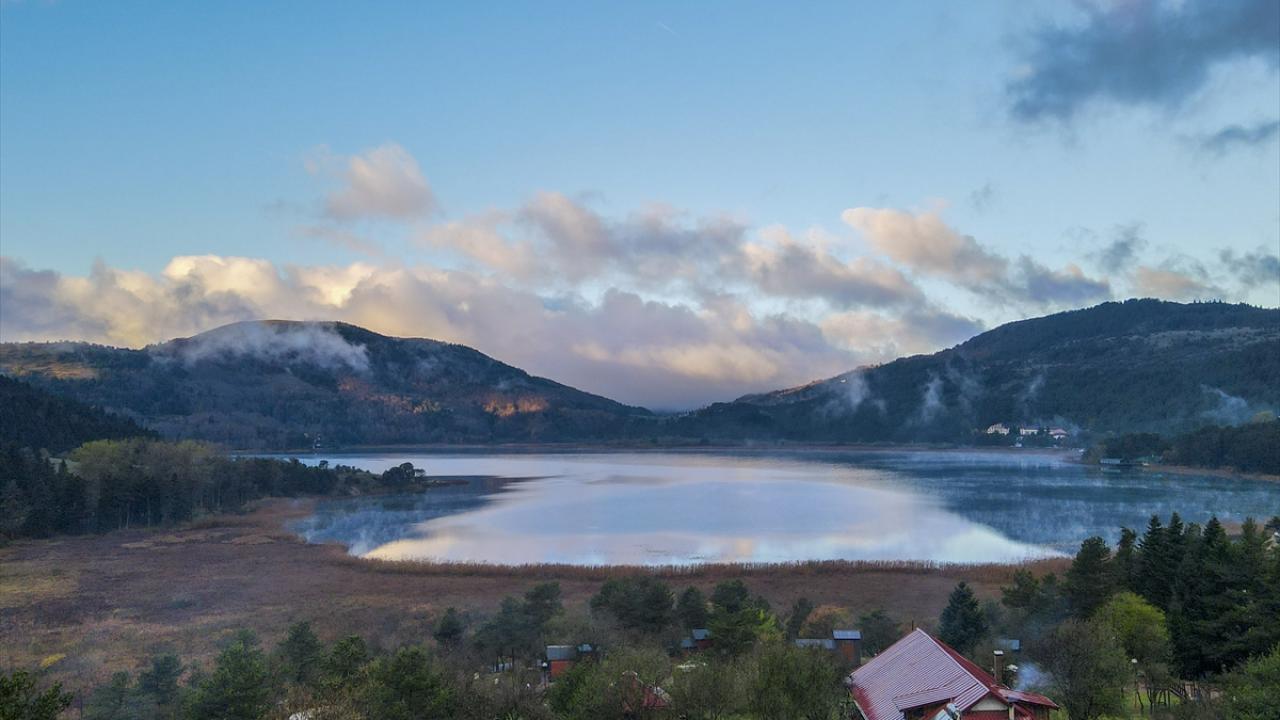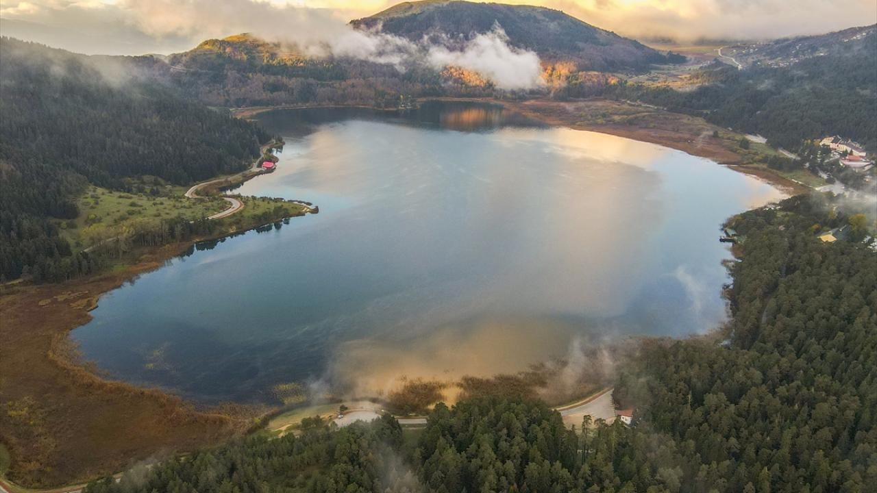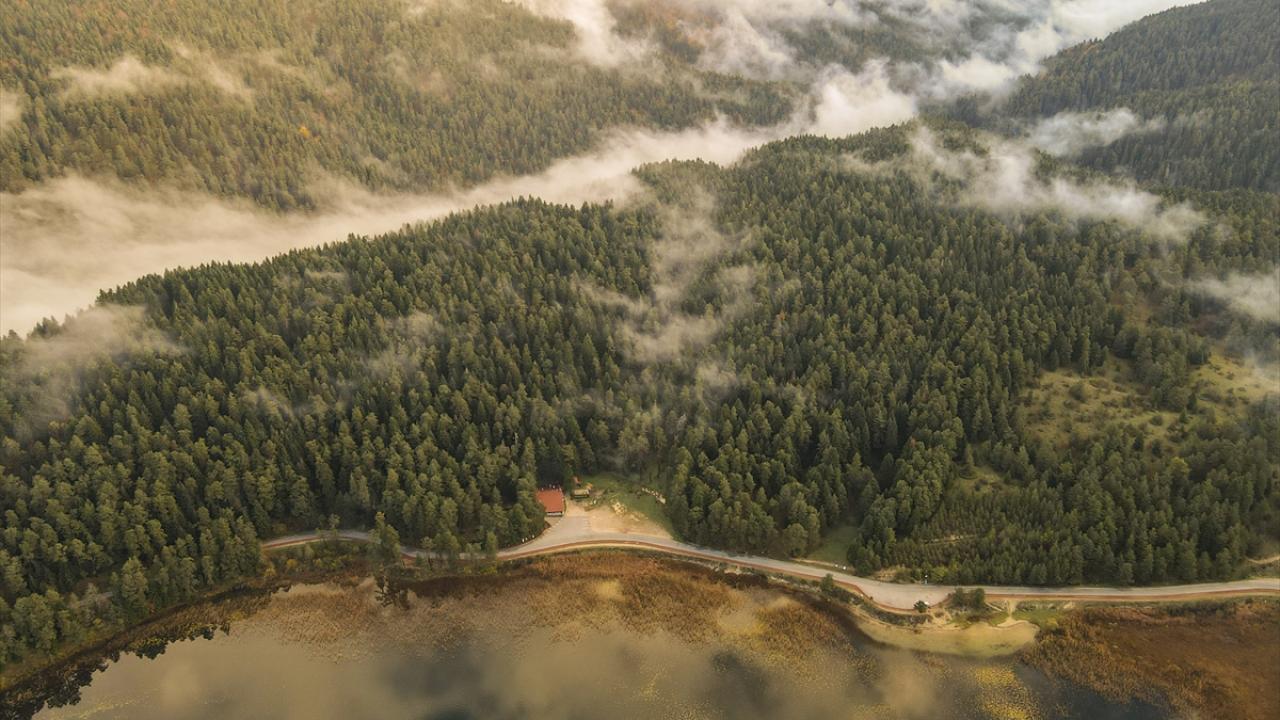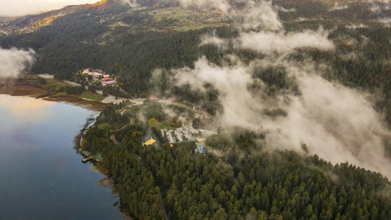 Bolu'nun Mudurnu ilçesine bağlı Abant Gölü Milli Parkı, sonbahar mevsiminde havadan görüntülendi.
