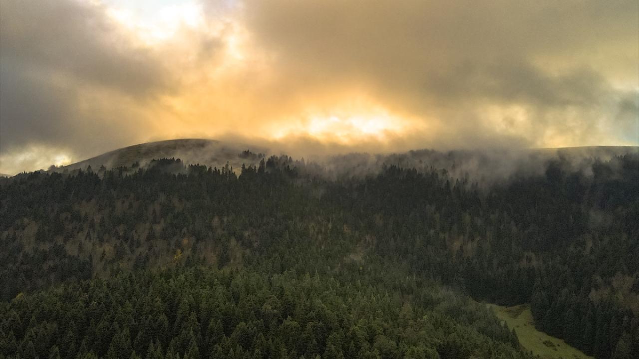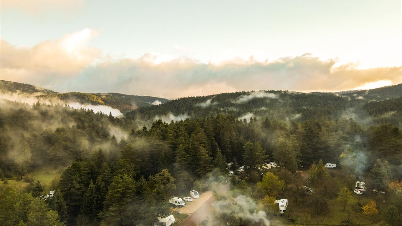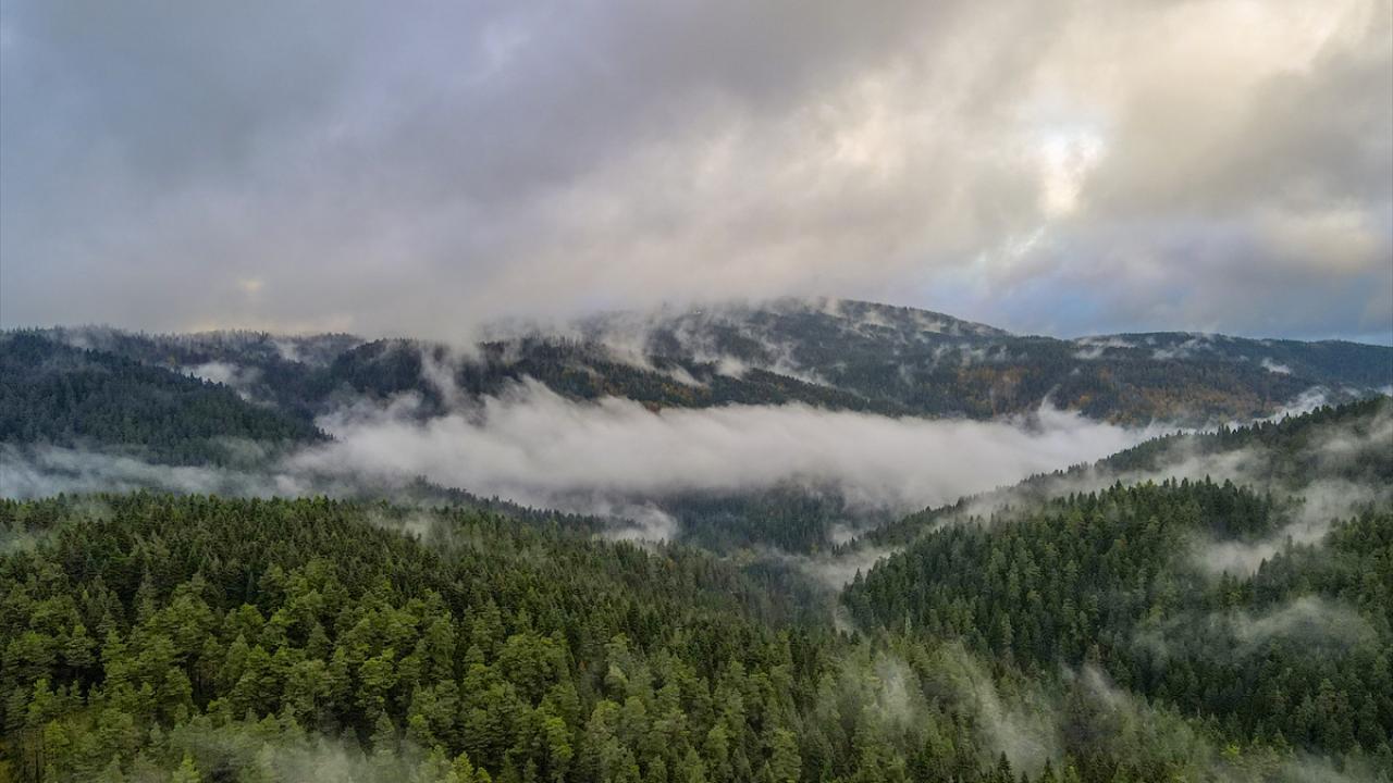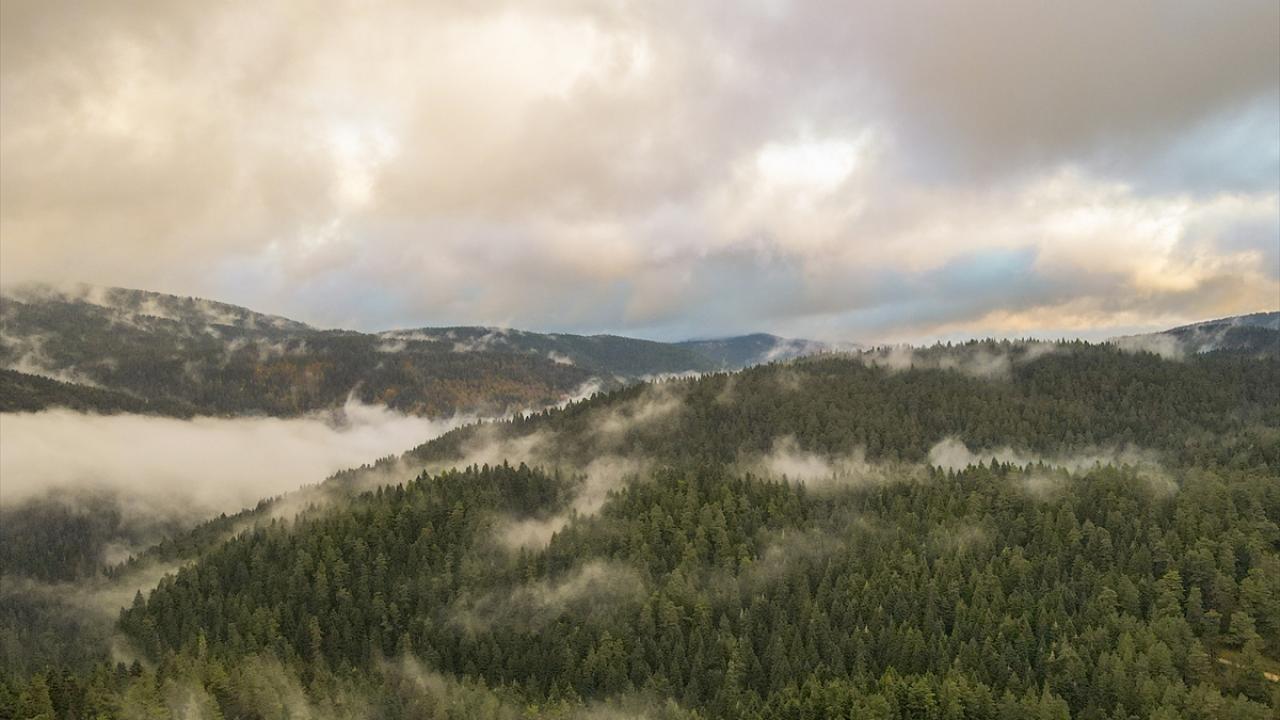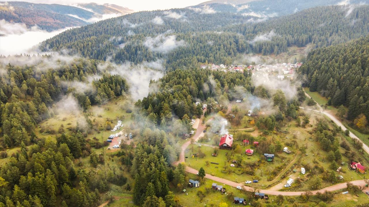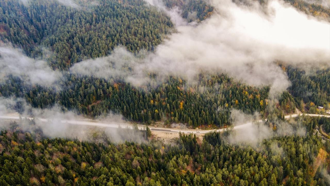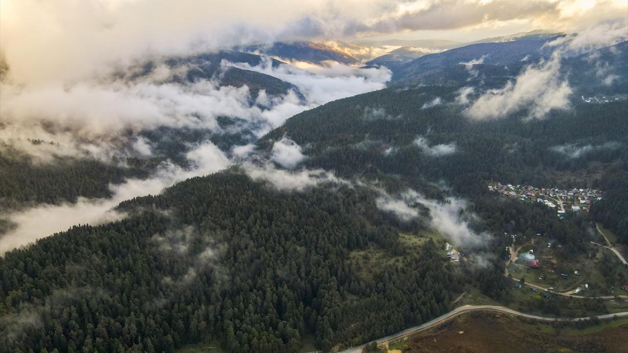 Bolu'nun Mudurnu ilçesine bağlı Abant Gölü Milli Parkı, sonbahar mevsiminde havadan görüntülendi.