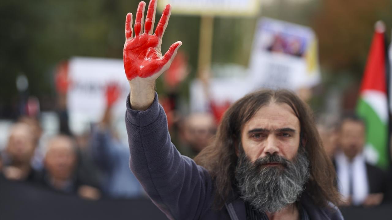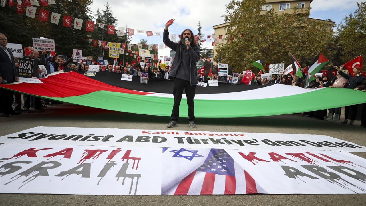 Cihannüma Dayanışma ve İşbirliği Derneği Ankara Temsilcisi Semih Okumuş, grup adına yaptığı konuşmada, Blinken`ın ziyaretinin amacının İsrail`in işgalini normalleştirmek ve planlarını işletmek olduğunu öne sürdü.