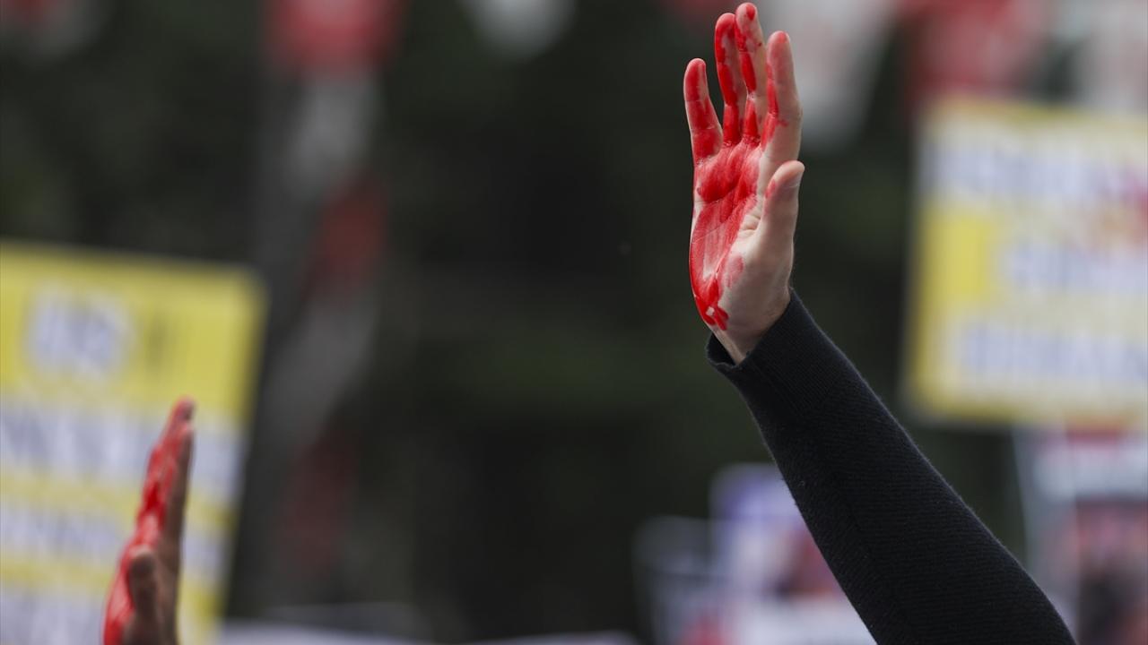 Blinken`ın Dışişleri Bakanı Hakan Fidan`ı ziyareti sırasında Bakanlık çevresinde toplanan grup, Filistin bayrağı ile İsrail ve ABD aleyhinde pankartlar açtı, slogan attı.