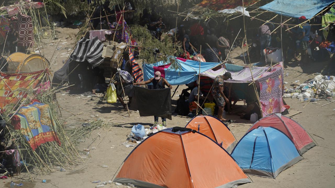 Aralarında çocukların da olduğu göçmenler, 35 bin nüfuslu Del Rio`da bir köprünün altında çadırlar kurarak ya da geçici barınaklar yaparak kamp kurdu.